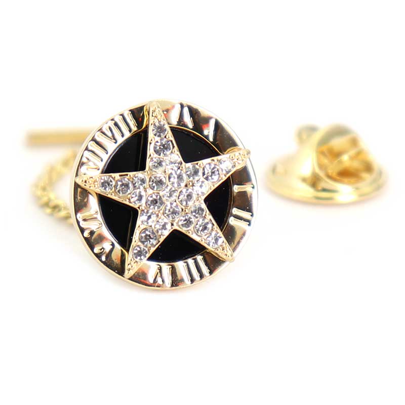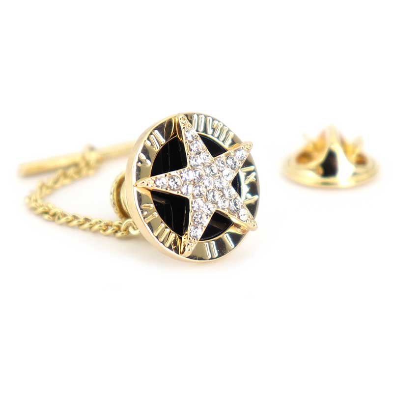 きらきら星-タイタック-ラペルピン-2way仕様-金-黒-白色-タイタック-ラペルピン-チェーン付-ゴールド系-男女-カフリングス-営業マン