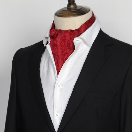アスコットタイ-スーツ-オシャレ-飾る-赤色のペイズリー柄-スーツ-フォーマル-プレゼント-ギフト-父の日-パーティ-正装-ドレスアップ-銀座-英国-マナー-ハイエンド-プレゼント-豪華-リッチ