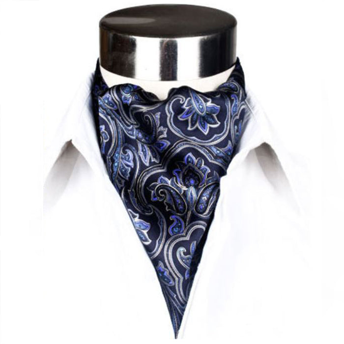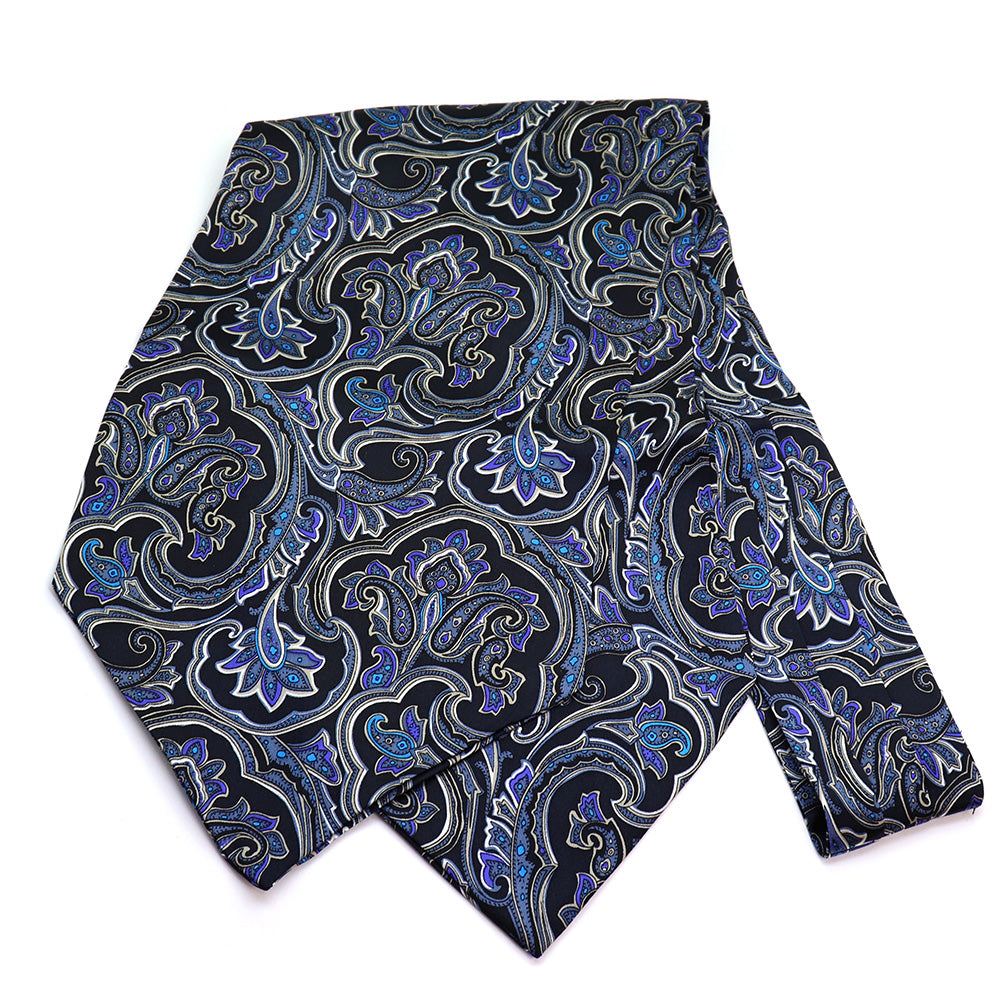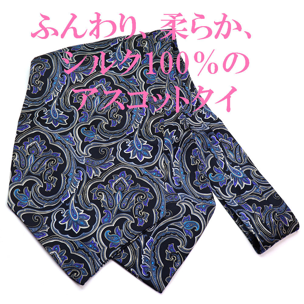 アスコットタイ-スーツ-オシャレ-飾る-高級-シルク-ブルー-大柄-模様-スーツ-フォーマル-プレゼント-ギフト-父の日-パーティ-正装-ドレスアップ-銀座-英国-マナー-ハイエンド-プレゼント-豪華-リッチ