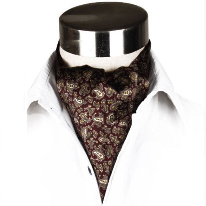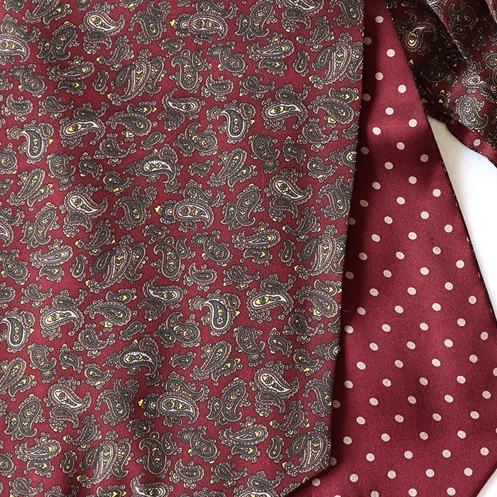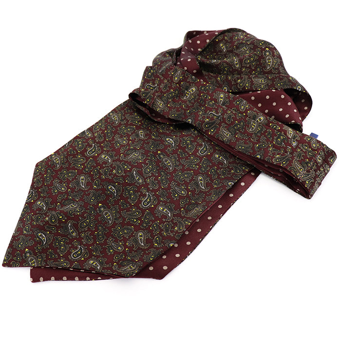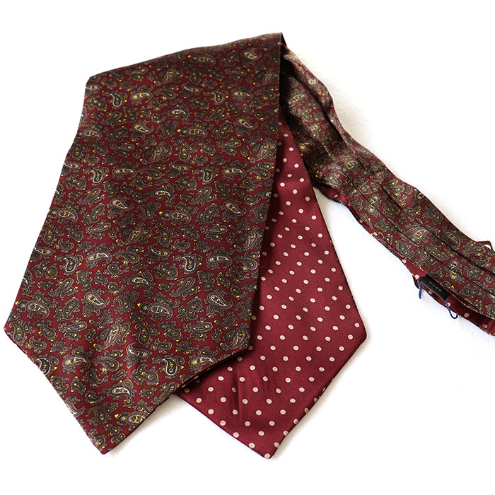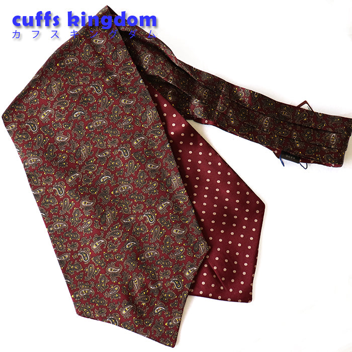 アスコットタイ-スーツ-オシャレ-飾る-高級-シルク-深紅-細かな-ペイズリー柄-スーツ-フォーマル-プレゼント-ギフト-父の日-パーティ-正装-ドレスアップ-銀座-英国-マナー-ハイエンド-プレゼント-豪華-リッチ