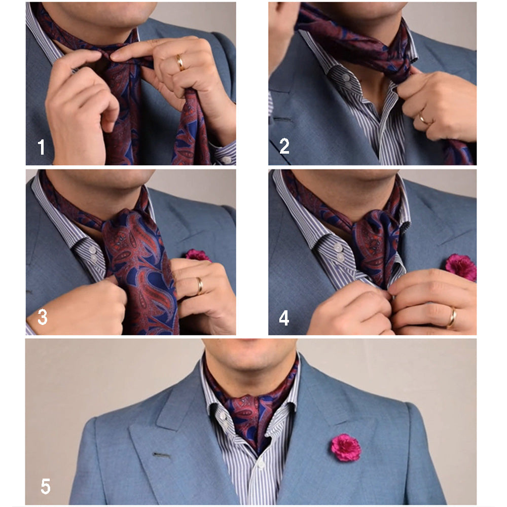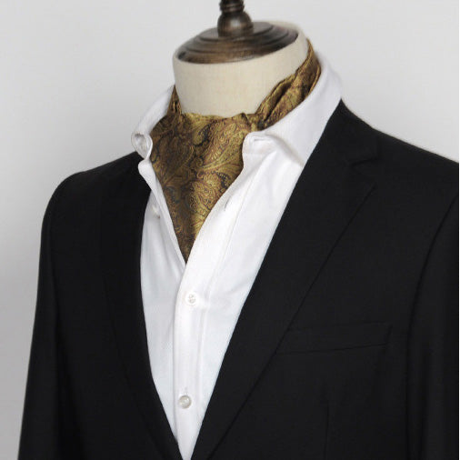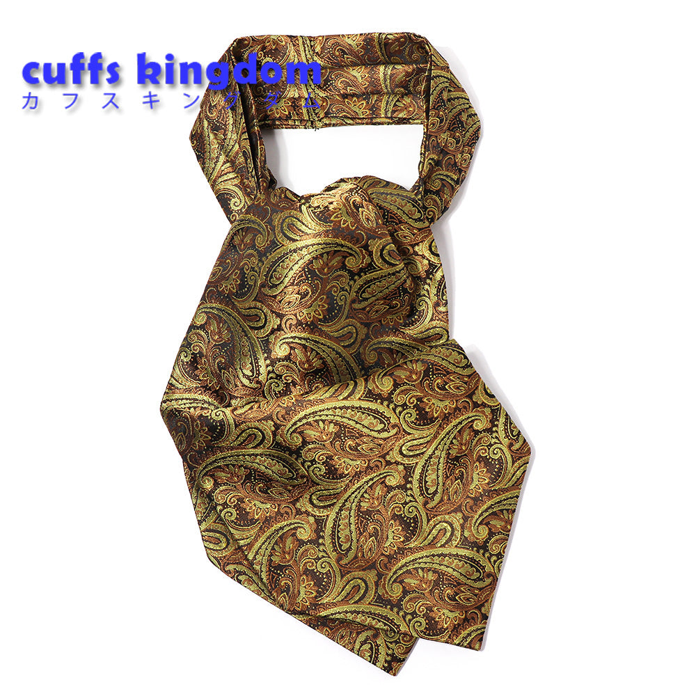 アスコットタイ-スーツ-オシャレ-飾る-黄色と茶色のペイズリー柄-スーツ-フォーマル-プレゼント-ギフト-父の日-パーティ-正装-ドレスアップ-銀座-英国-マナー-ハイエンド-プレゼント-豪華-リッチ