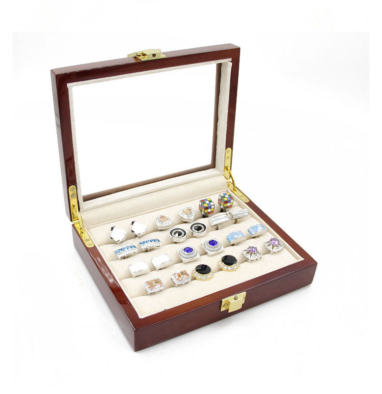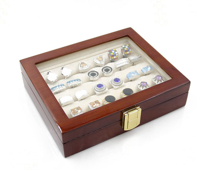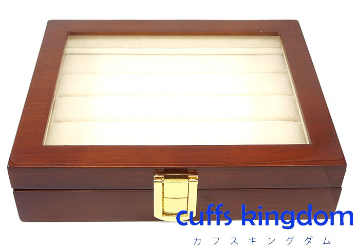 多数のカフスボタンを保管する専用のケースです。 深い茶色で表面に光沢があり非常に美しい仕上がりです。最高級品です。