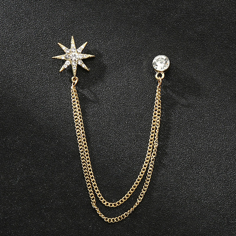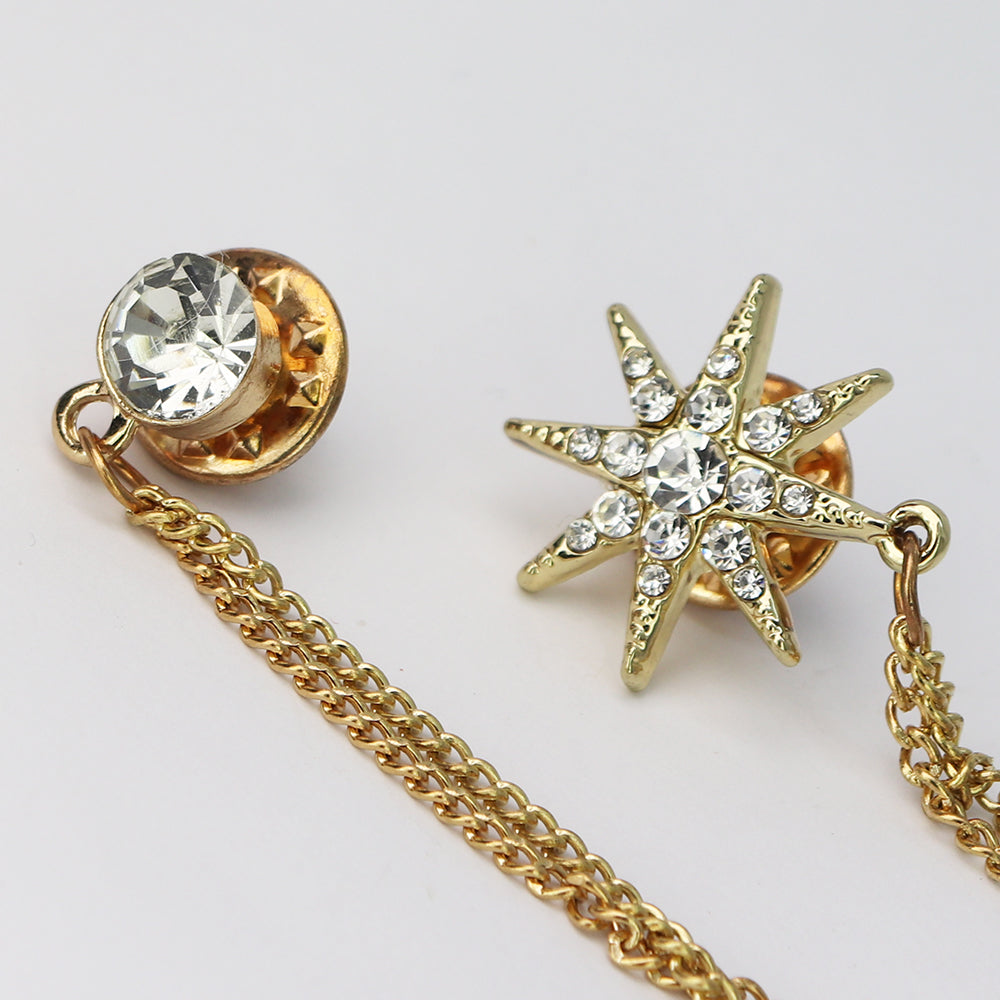 キラキラ 星 チェーン ピン スーツ アクセサリー ラベルピン ゴールド 男女 おしゃれ エレガント プレゼント ギフト 大人気 個性 成人式 卒業式 結婚式 カフス専門店