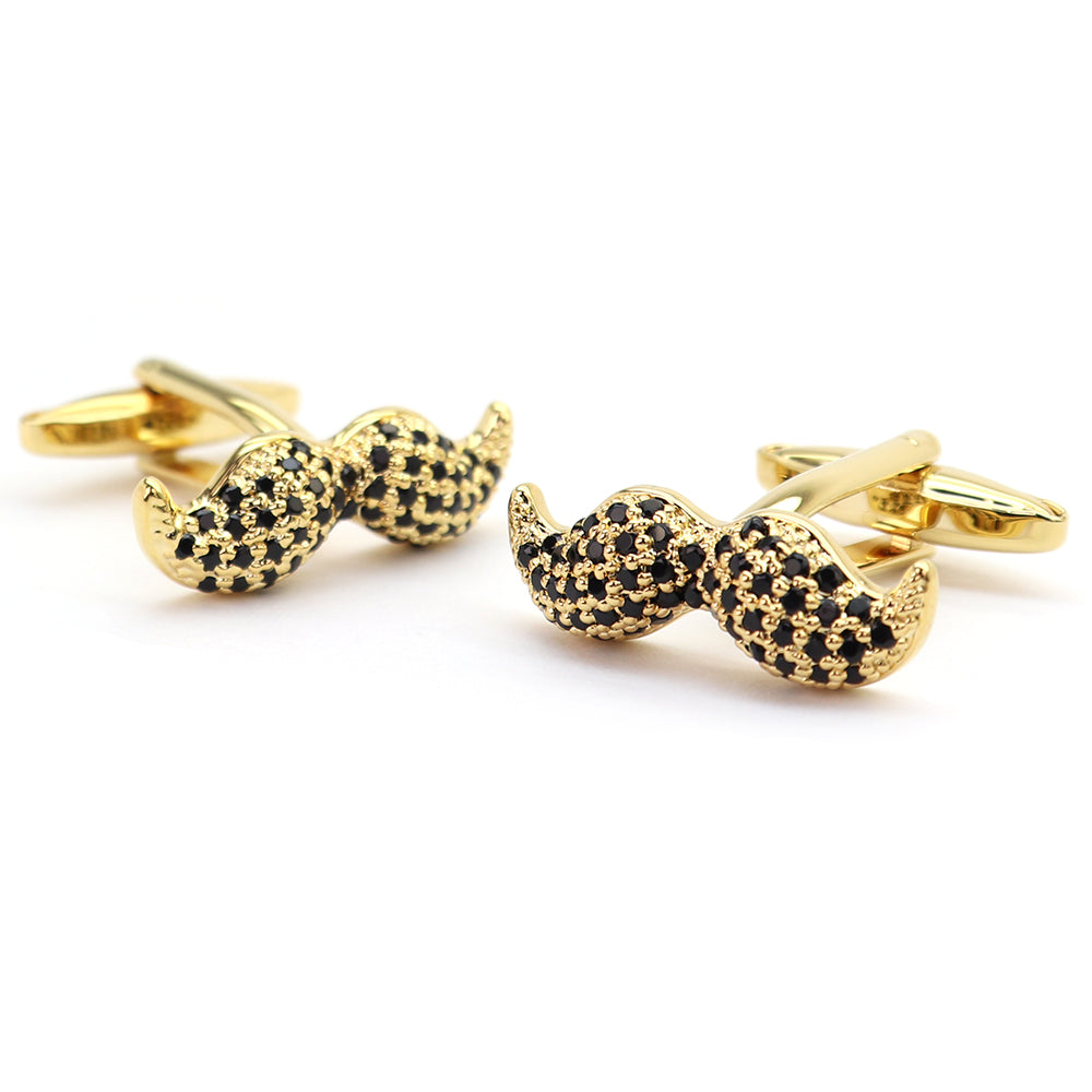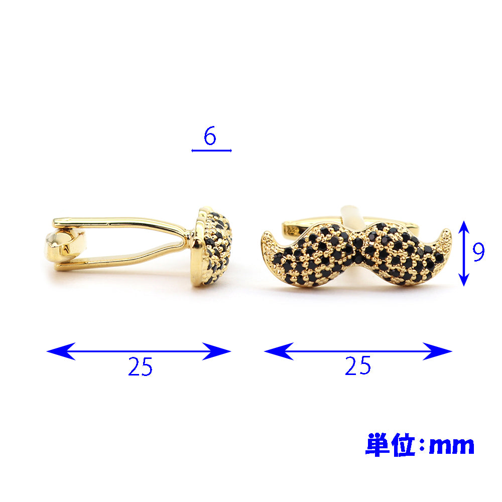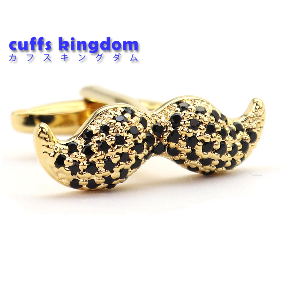 クリスタルがいっぱい ひげ 髭 カフスボタン ゴールド おしゃれ 面白 エレガント ゴージャス 男女 カフリングス 人気 個性 プレゼント カフス専門店