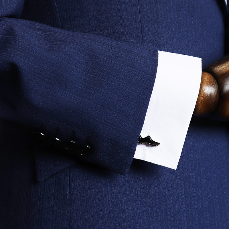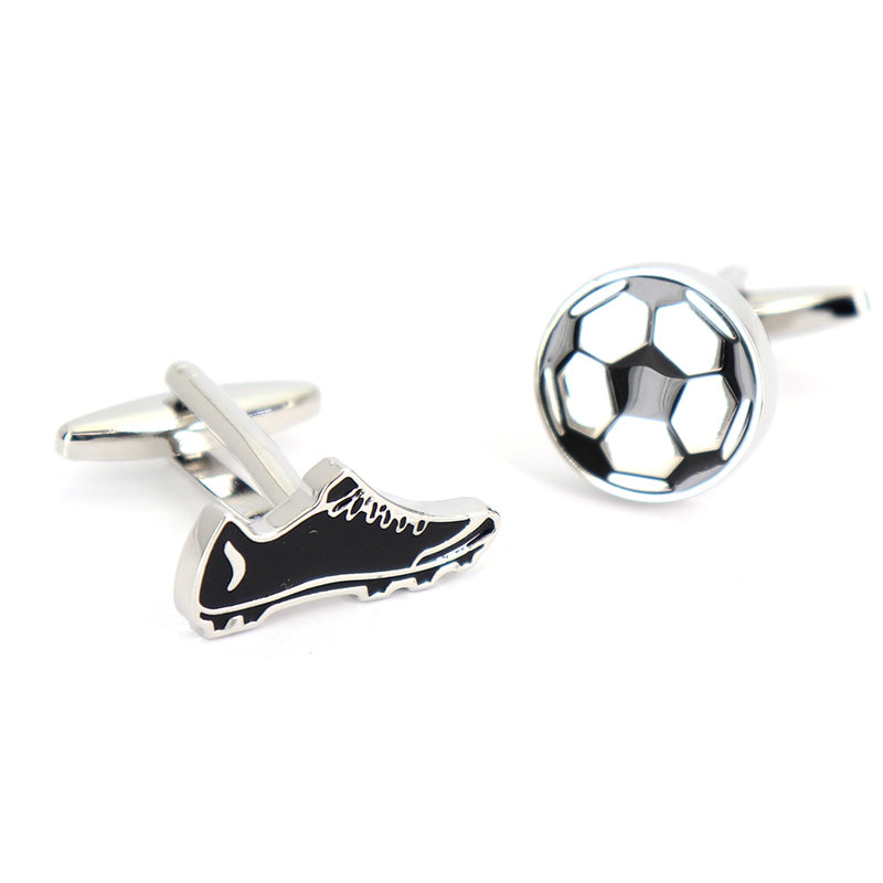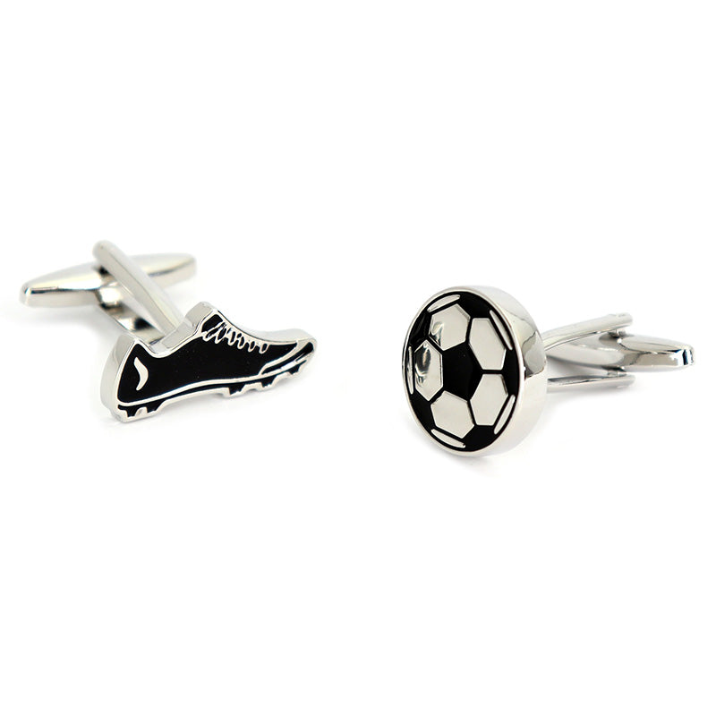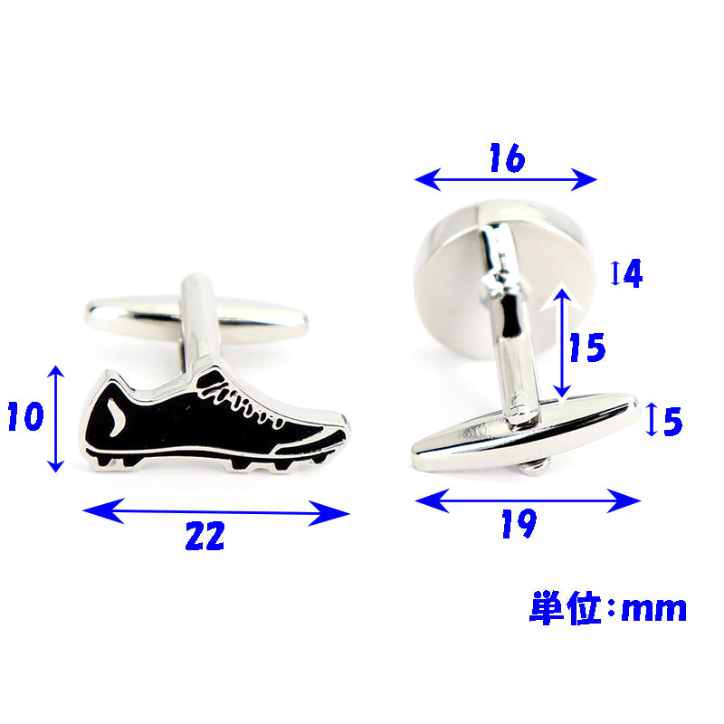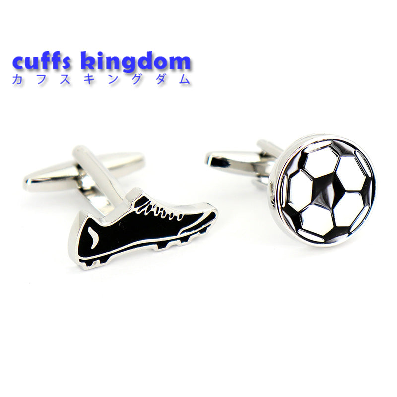 サッカーボール-シューズ-アシンメトリー-カフスボタン-黒-銀-色-シンプル-男性-デザイン-シルバー-スポーツ-男-カフリングス-イケメン-プレゼント-カフス専門店