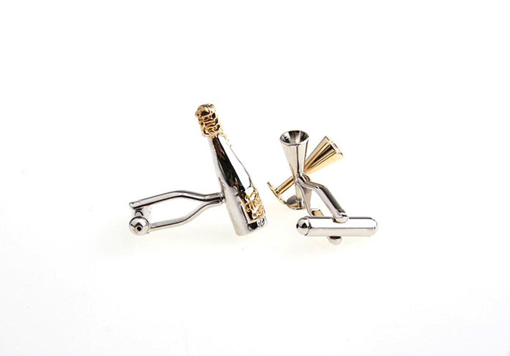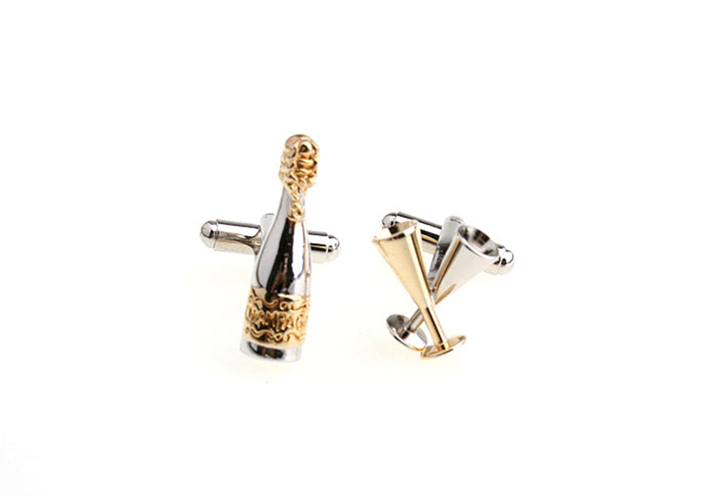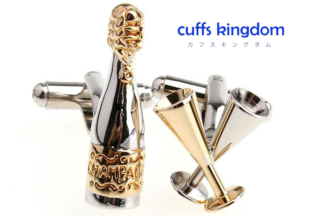 シャンパン-で-乾杯-カフスボタン-金配色-アシメトリー-カフリングス