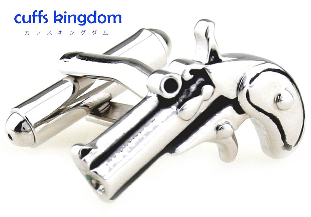 シルバー-ピストル-型-カフスボタン-銀色-系-男女-カフリングス-営業マン-おしゃれ-かわいい-結婚式-カジュアル-シンプル-スーツ-人気-プレゼント-ギフト-入園式-入学式-成人式