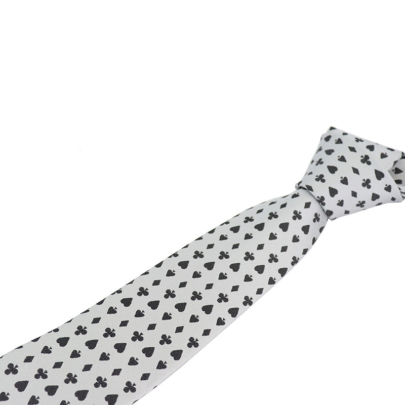 シルバー-生地-トランプ-柄-silver-ネクタイ-可愛い-ポリエステル-おしゃれ-かわいい-結婚式-カジュアル-シンプル-スーツ-人気-プレゼント-ギフト-春-成人式