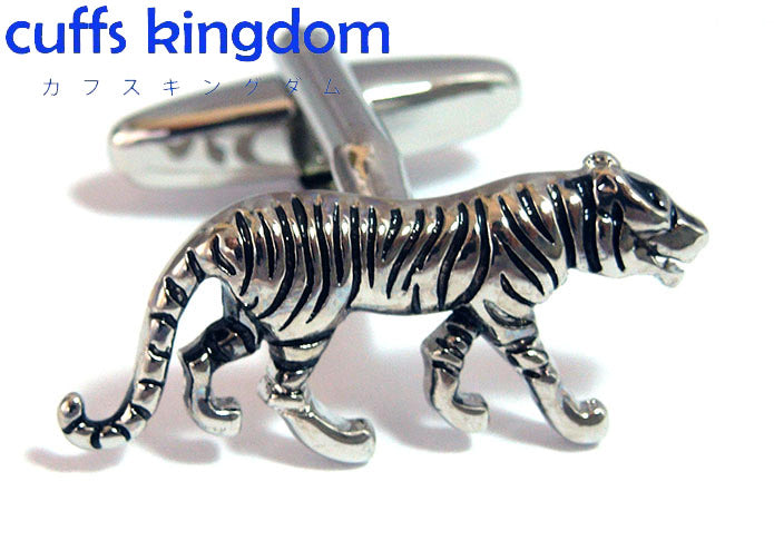 ジャングル-の-虎-銀-色-カフスボタン-シルバー-アニマル系-勇ましさ-男-カフリングス-動物-プレゼント-おしゃれ-結婚式-カフス専門店
