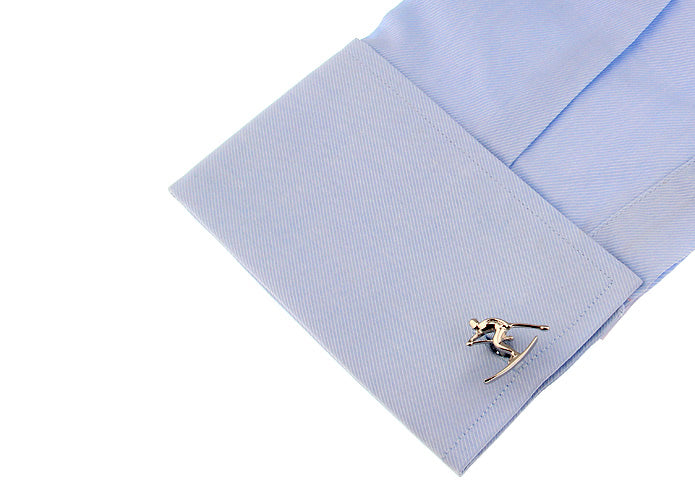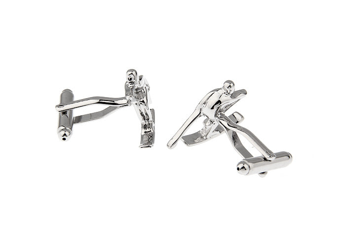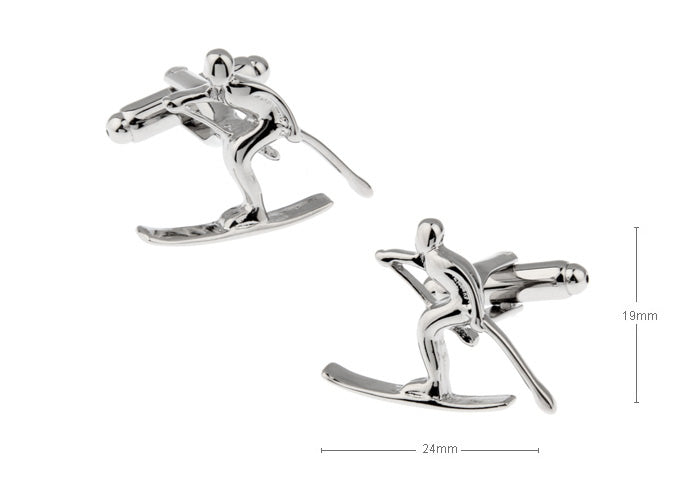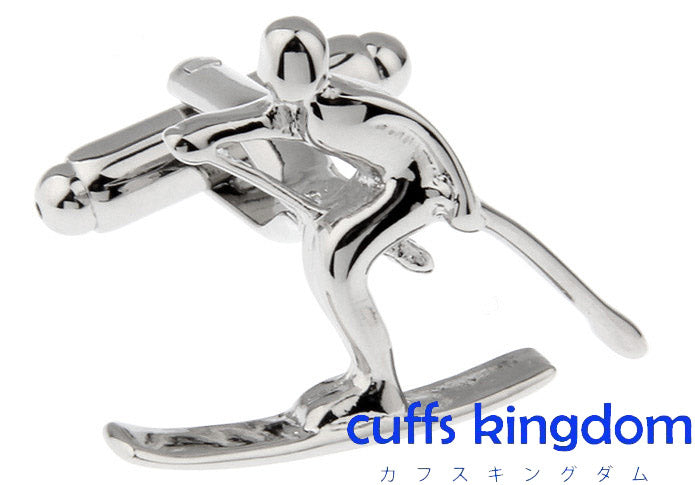 スキー-直滑降-銀色-カフスボタン-銀色-系-男女-カフリングス-営業マン-おしゃれ-かわいい-結婚式-カジュアル-シンプル-スーツ-人気-プレゼント-ユニーク-ギフト-入園式-入学式-成人式
