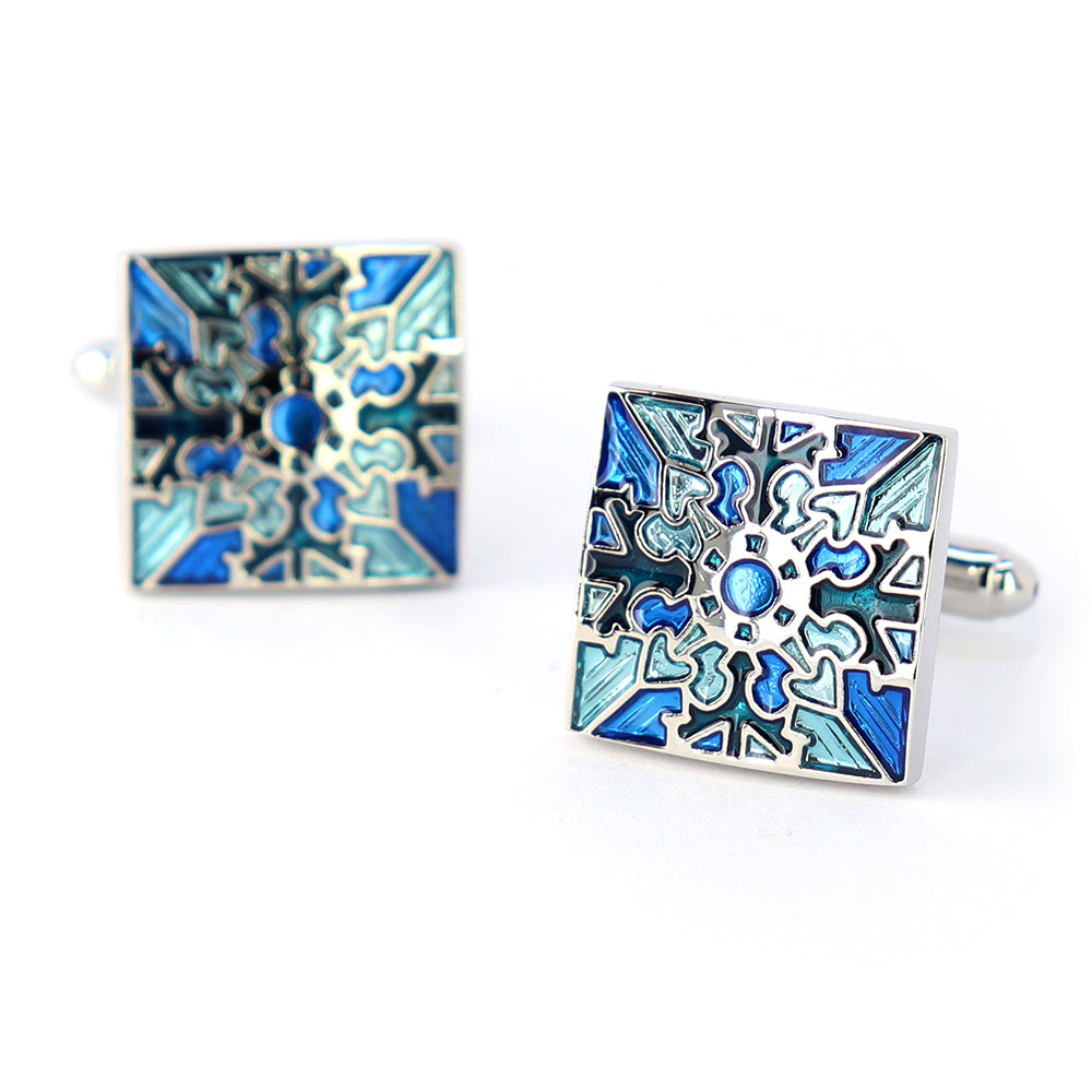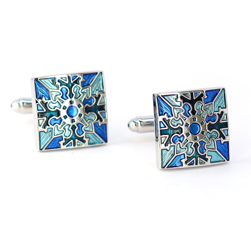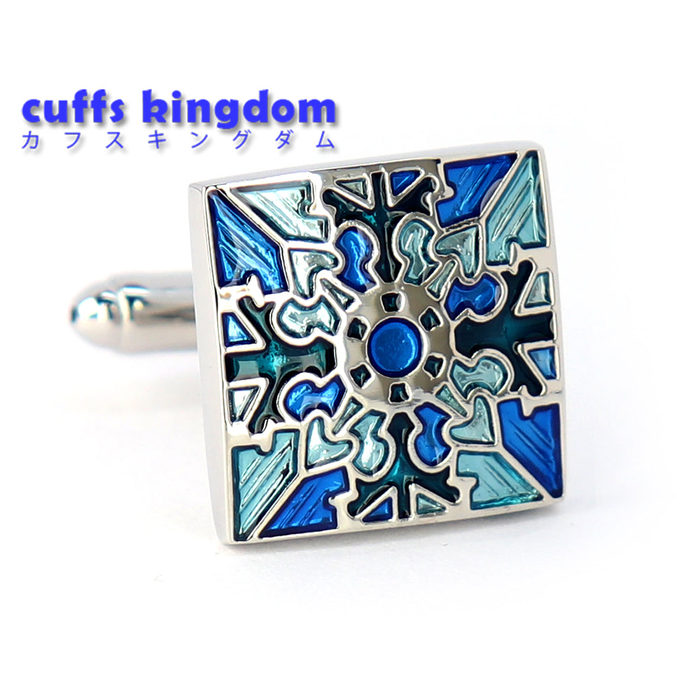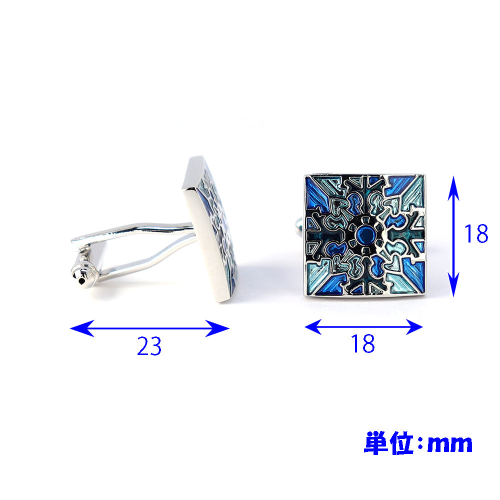 スクエア型-ブルー柄-カフスボタン-男女-カフリングス-営業マン-個性-スーツ-人気-かわいい-プレゼント-ギフト-カフス専門店