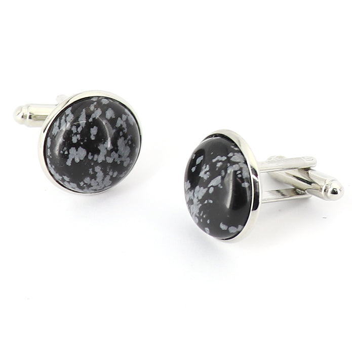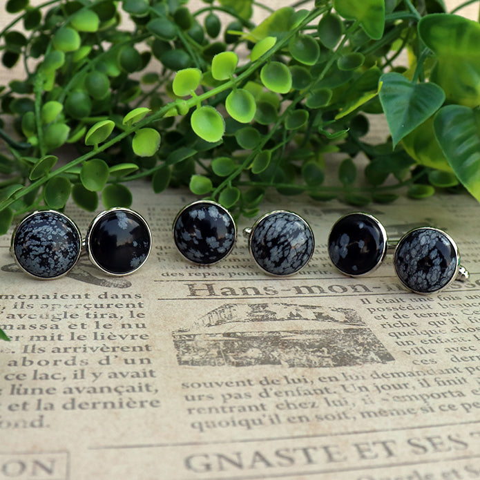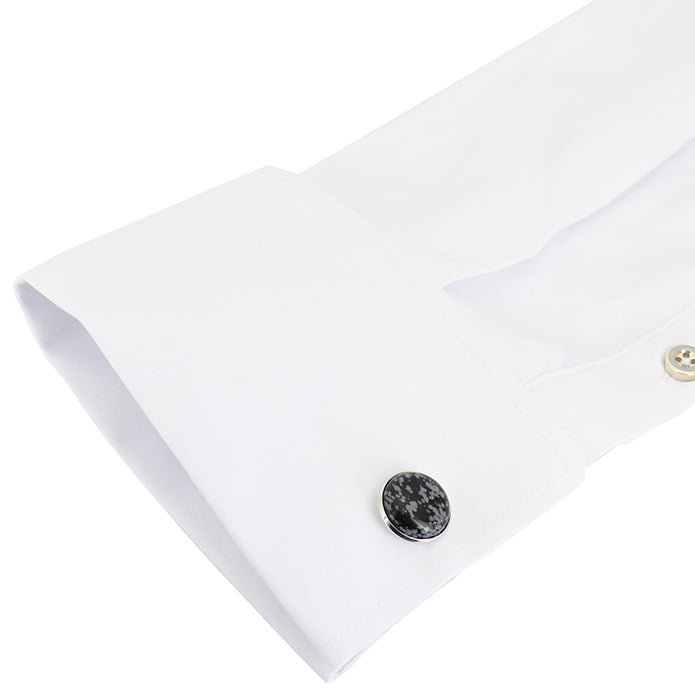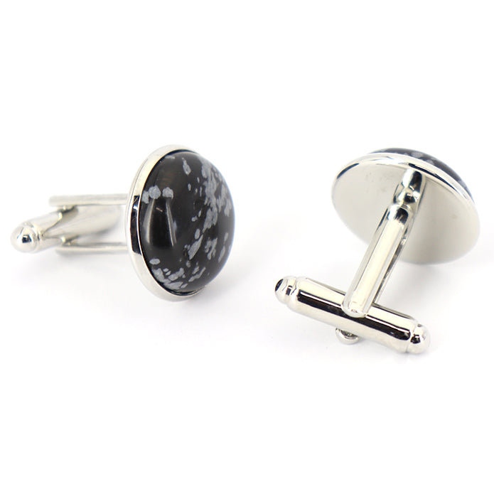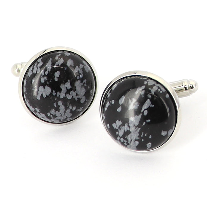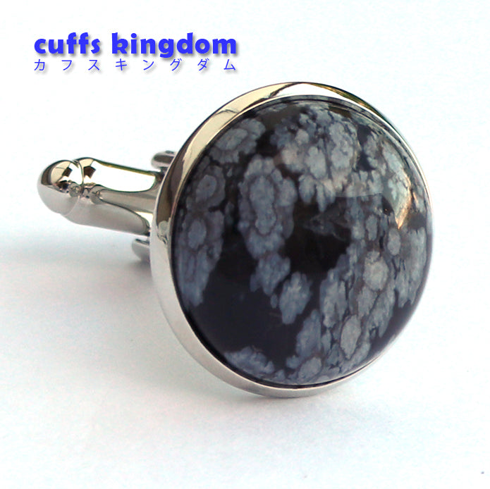 スノーフレークオブシディアン/雪花石 カフスボタン