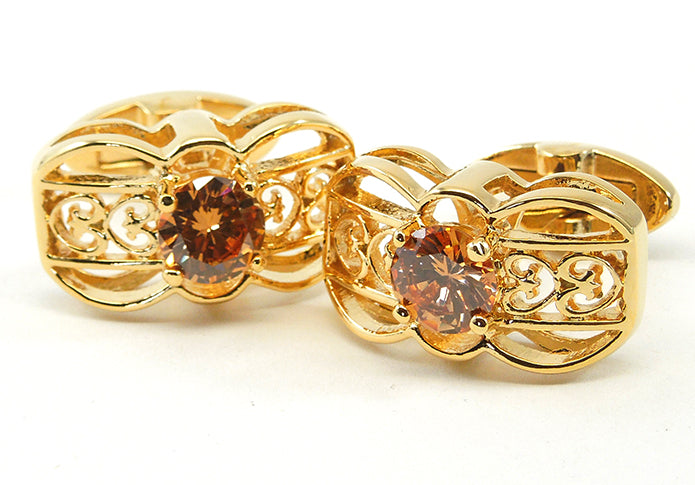 ダイヤモンド-カット-ジュエリ-金-橙-カフスボタン-ゴールド-ジュエル系-おしゃれ-男女-カフリングス-フォーマル-エレガント-結婚式-プレゼント-カフス専門店