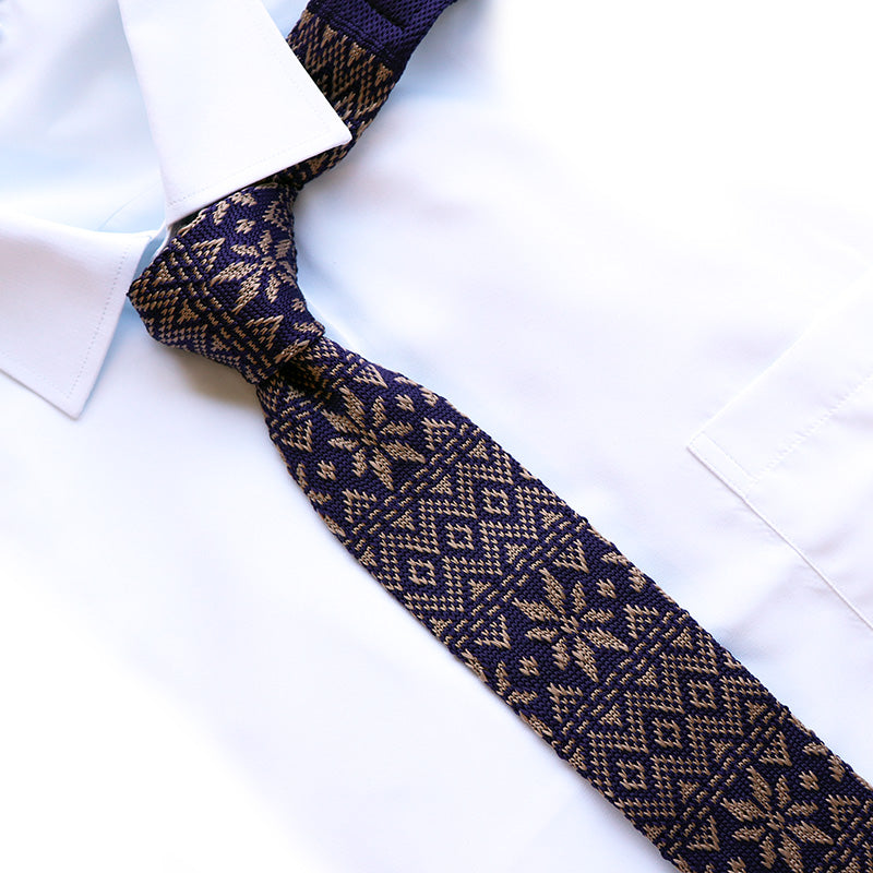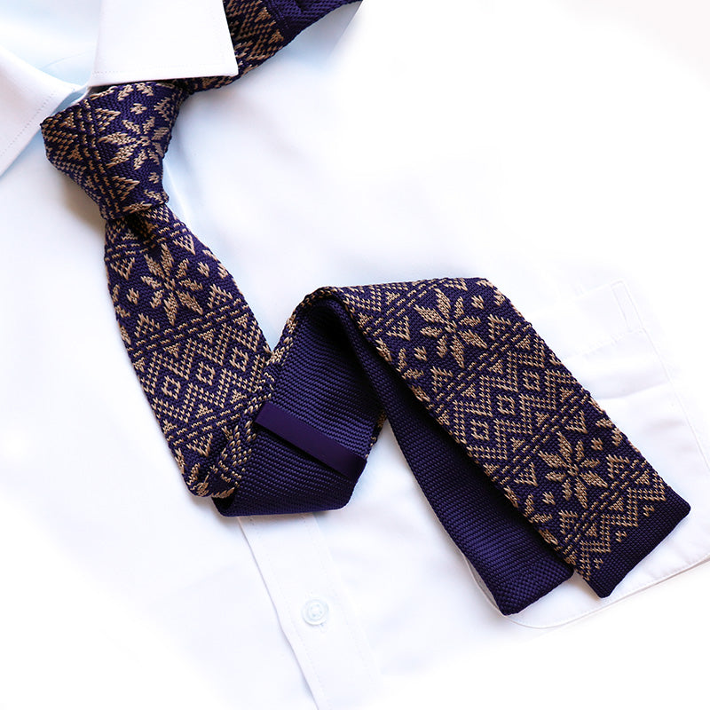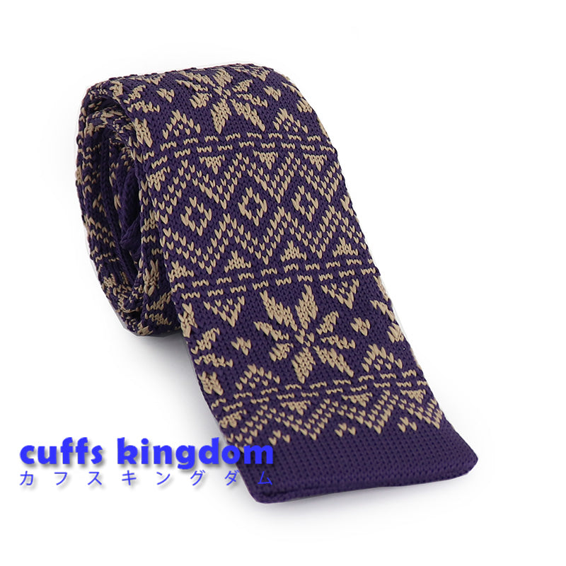 ダークパープル-雪の結晶-アンティーク調-ニット編み模様-ニット-ネクタイ-ニットタイプ-全長-約141cm-剣幅-約5-5cm-情熱系-奇抜-男女-祝-おしゃれ-かわいい-結婚式-カジュアル-シンプル-スーツ-人気-プレゼント-ギフト-入園式-入学式-成人式