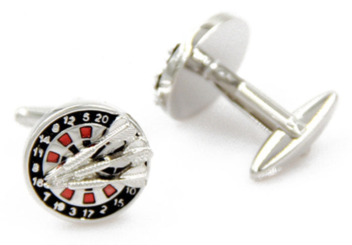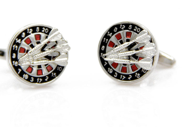ダーツ-付き-ダーツ-盤-銀-赤黒-色-カフスボタン-カラフル-男女-カフリングス-スーツ-人気-プレゼント-ギフト-ユニーク-趣味-カフス専門店
