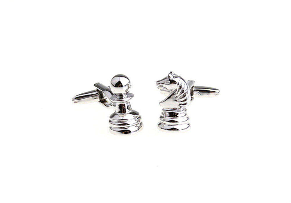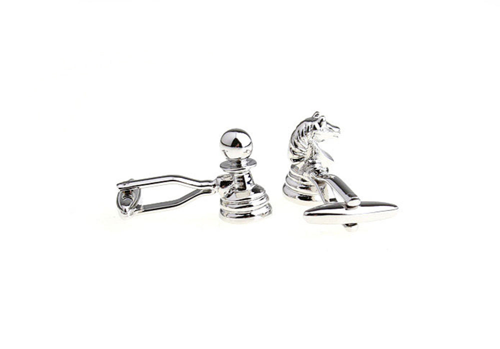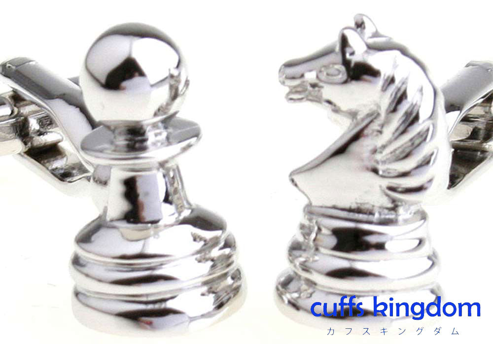 チェス-駒-ポーン-ナイト-カフスボタン-銀色-系-男女-カフリングス-営業マン-おしゃれ-かわいい-結婚式-カジュアル-シンプル-スーツ-人気-プレゼント-ギフト-入園式-入学式-成人式