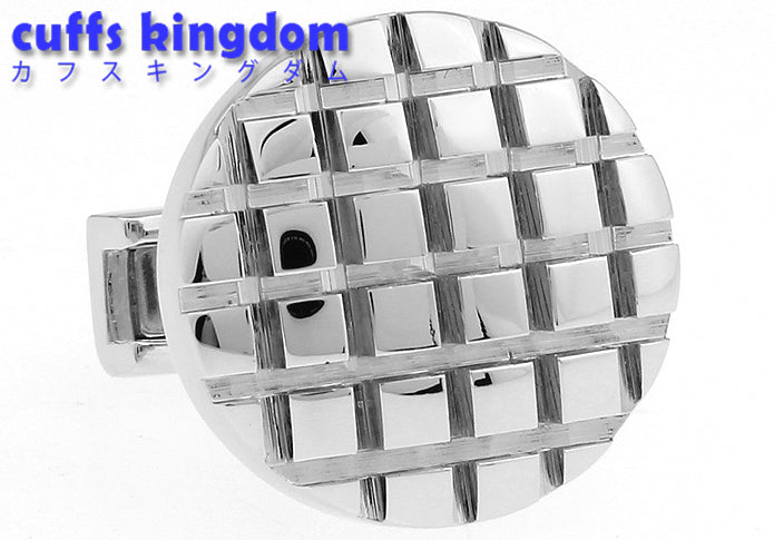 チェック-ラウンド-シルバー-カフスボタン-銀色-系-男女-カフリングス-営業マン-おしゃれ-かわいい-結婚式-カジュアル-シンプル-スーツ-人気-プレゼント-ギフト-入園式-入学式-成人式