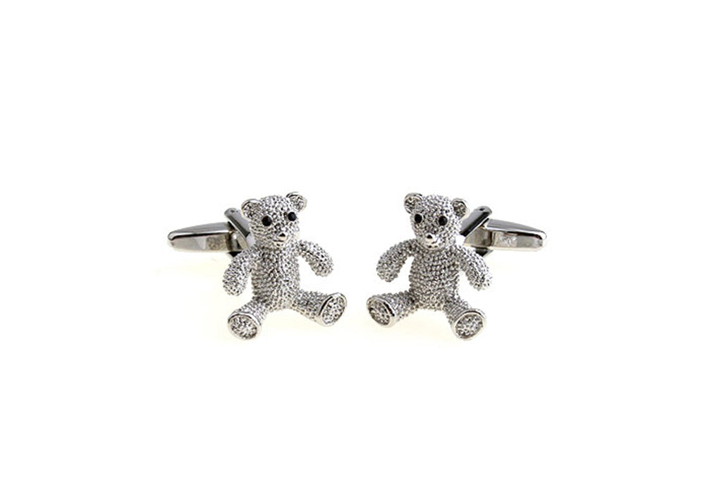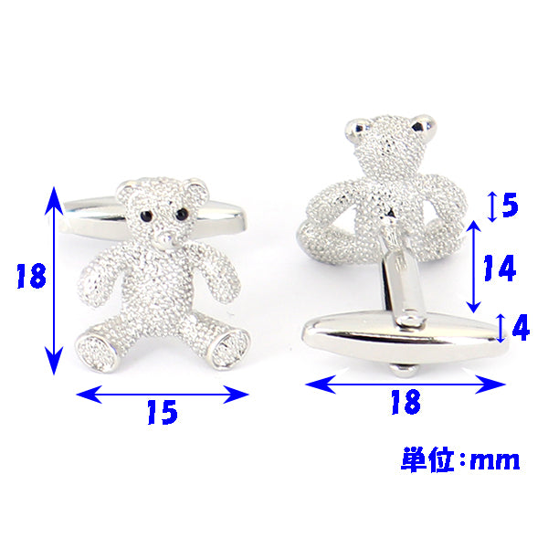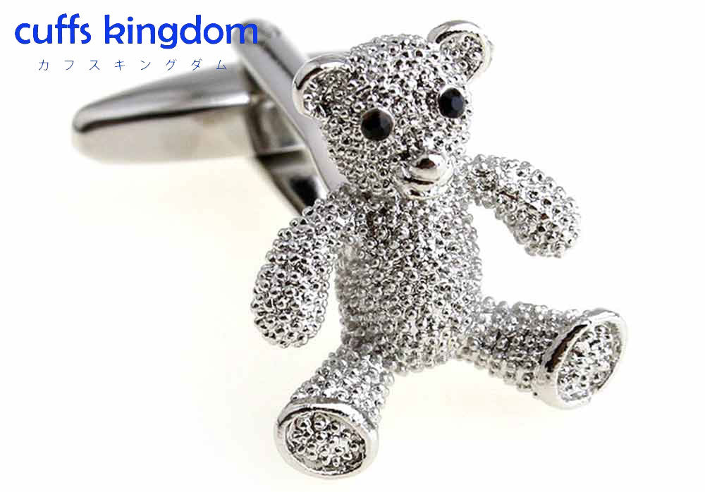 テディベア-くまさん-カフスボタン-銀色-系-男女-カフリングス-営業マン-おしゃれ-かわいい-結婚式-カジュアル-シンプル-スーツ-人気-プレゼント-ギフト-入園式-入学式-成人式