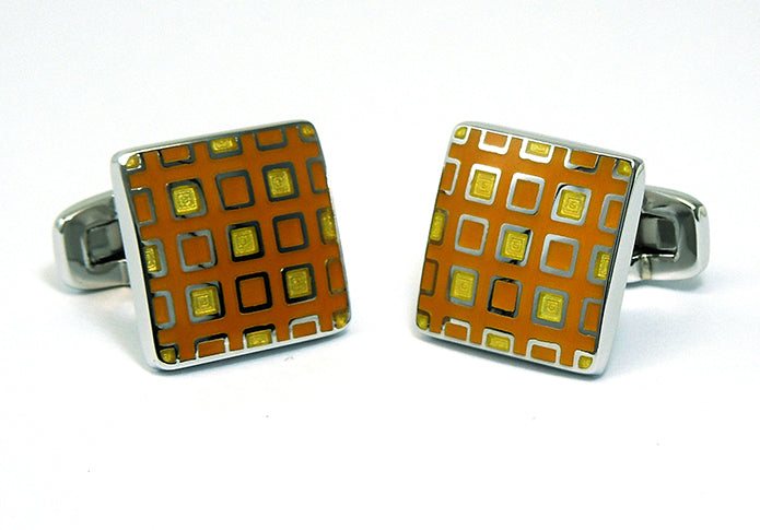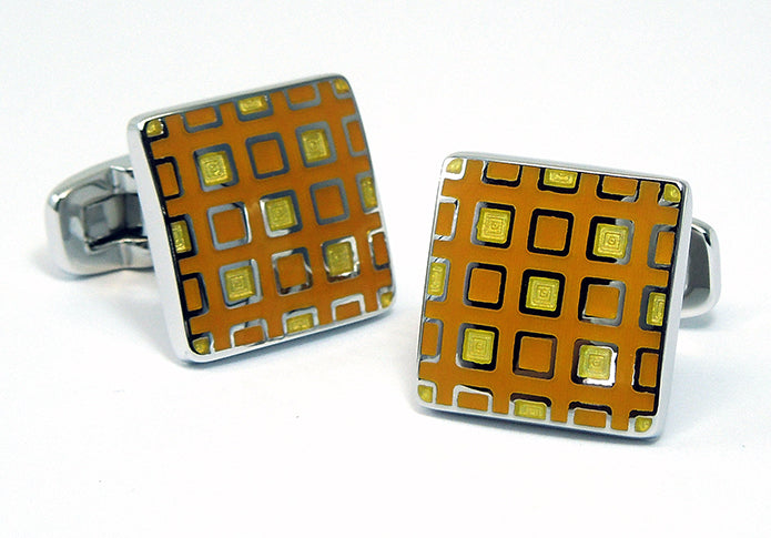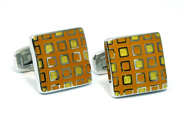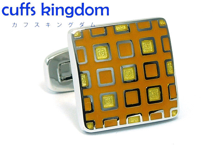 デザイン-アート-カフス-杏色-カフスボタン-イエロー-四角形-おしゃれ-細工-男女-カフリングス-人気-プレゼント-ギフト-入園式-入学式-成人式-カフス専門店