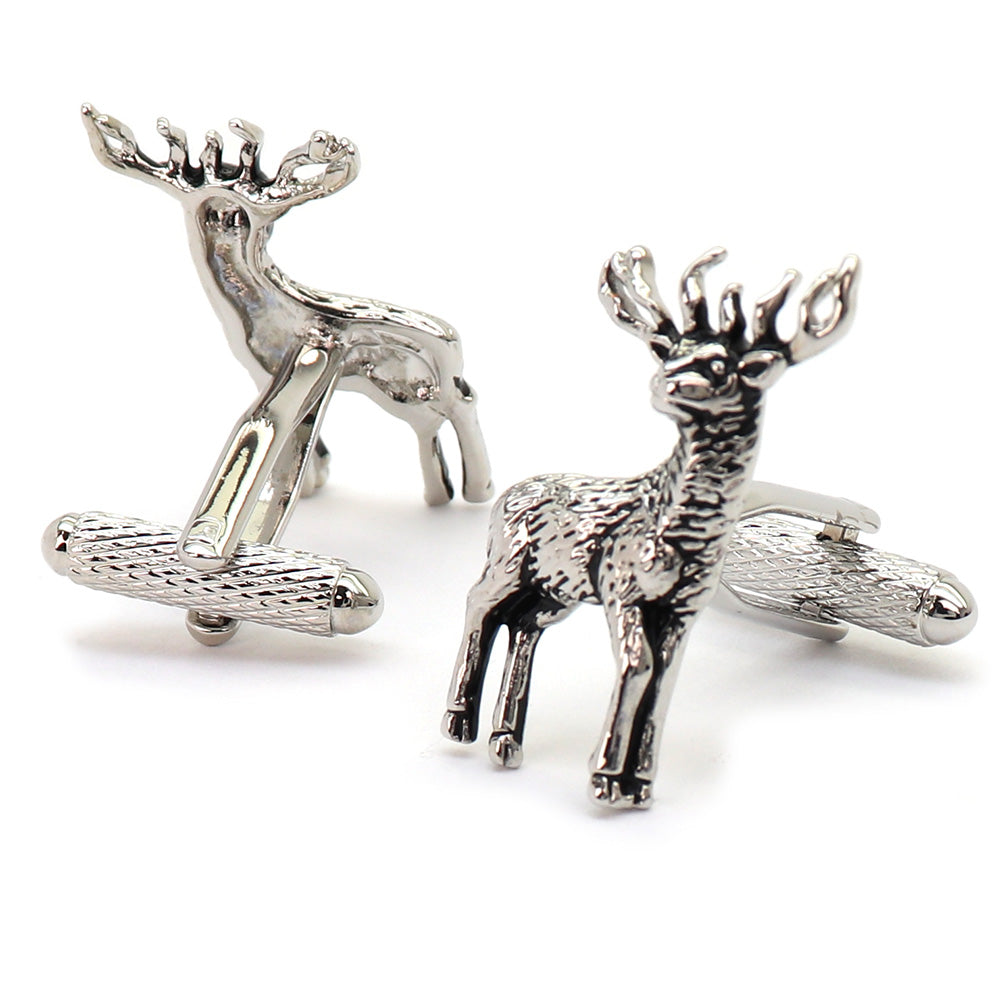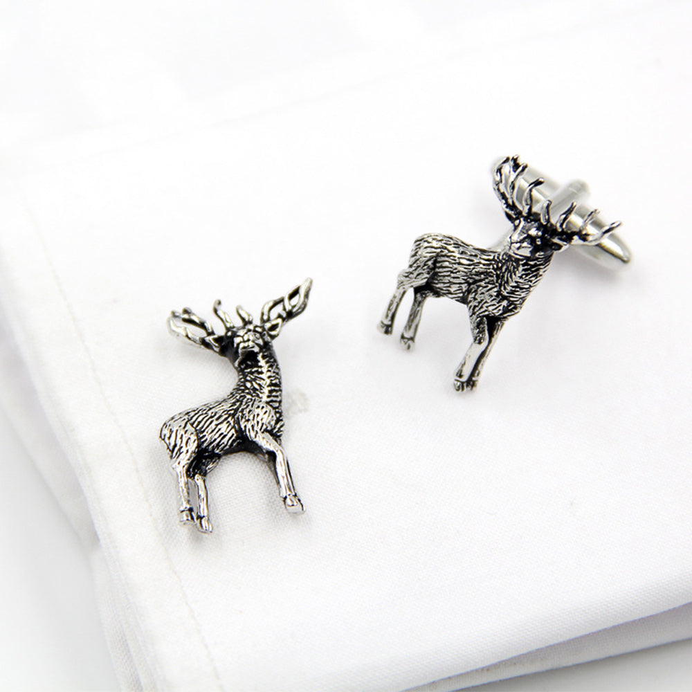 このカフスボタンは、その独特なデザインで、あらゆるシャツの袖口に洗練されたアクセントを加えます。細部にわたる精巧な彫刻が施されており、トナカイの優雅さと力強さを見事に表現しています。光沢のある仕上げが、どんなビジネスシーンや特別なイベントでも目を引くこと間違いなしです。