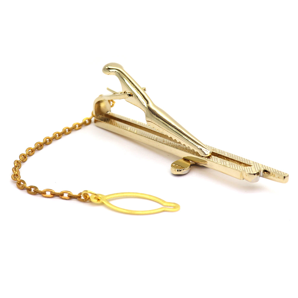 クラシックなバー形状に加え、装飾的なチェーンとクリップが機能性とスタイルを兼ね備えています。このチェーンはタイピンがズレることを防ぎ、いつも最適な位置に保つことができます。また、クリップはタイをしっかりと固定し、整った印象をキープします。