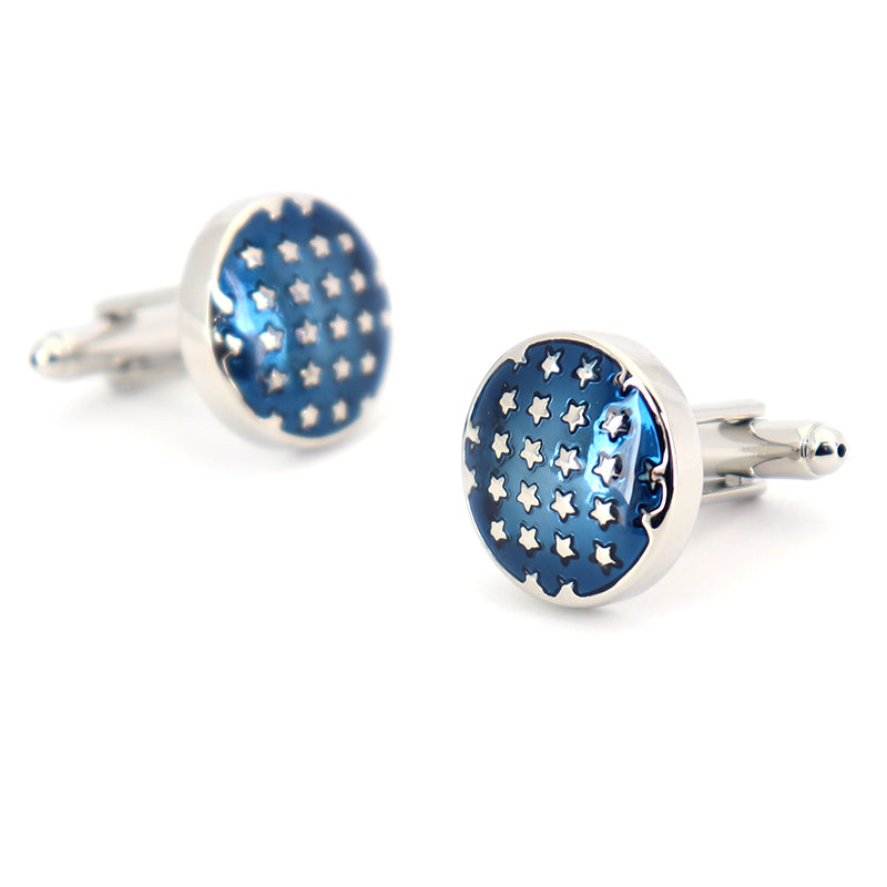 ドット-星柄-ブルー-カフス-ブルー-シルバー-青-男女-カフリングス-営業マン-おしゃれ-かわいい-結婚式-ジュエル-スーツ-人気-プレゼント-ギフト-入園式-入学式-成人式