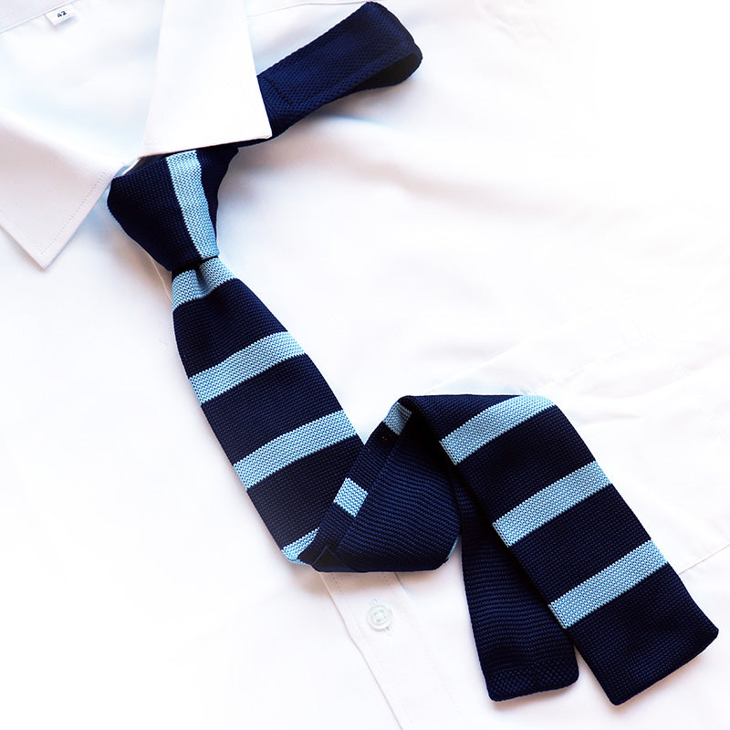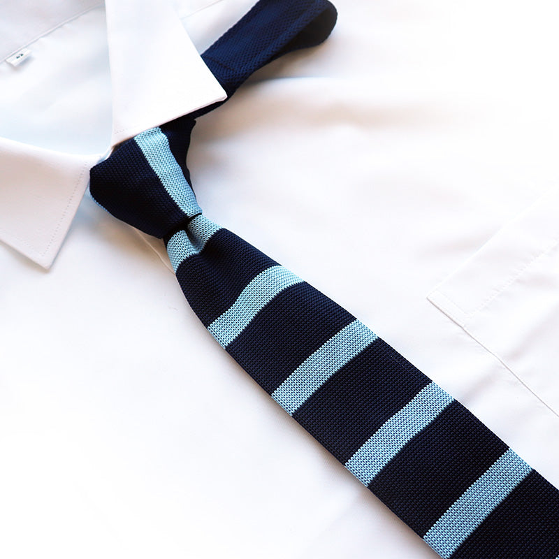 ネイビーベース-ブルーライン-オシャレな組み合わせ-ニット-ネクタイ-ニットタイプ-全長-約141cm-剣幅-約5-5cm-情熱系-奇抜-男女-祝-おしゃれ-かわいい-結婚式-カジュアル-シンプル-スーツ-人気-プレゼント-ギフト-入園式-入学式-成人式