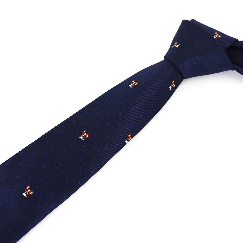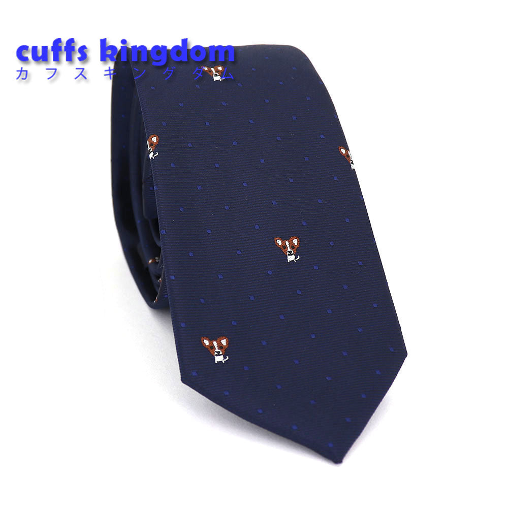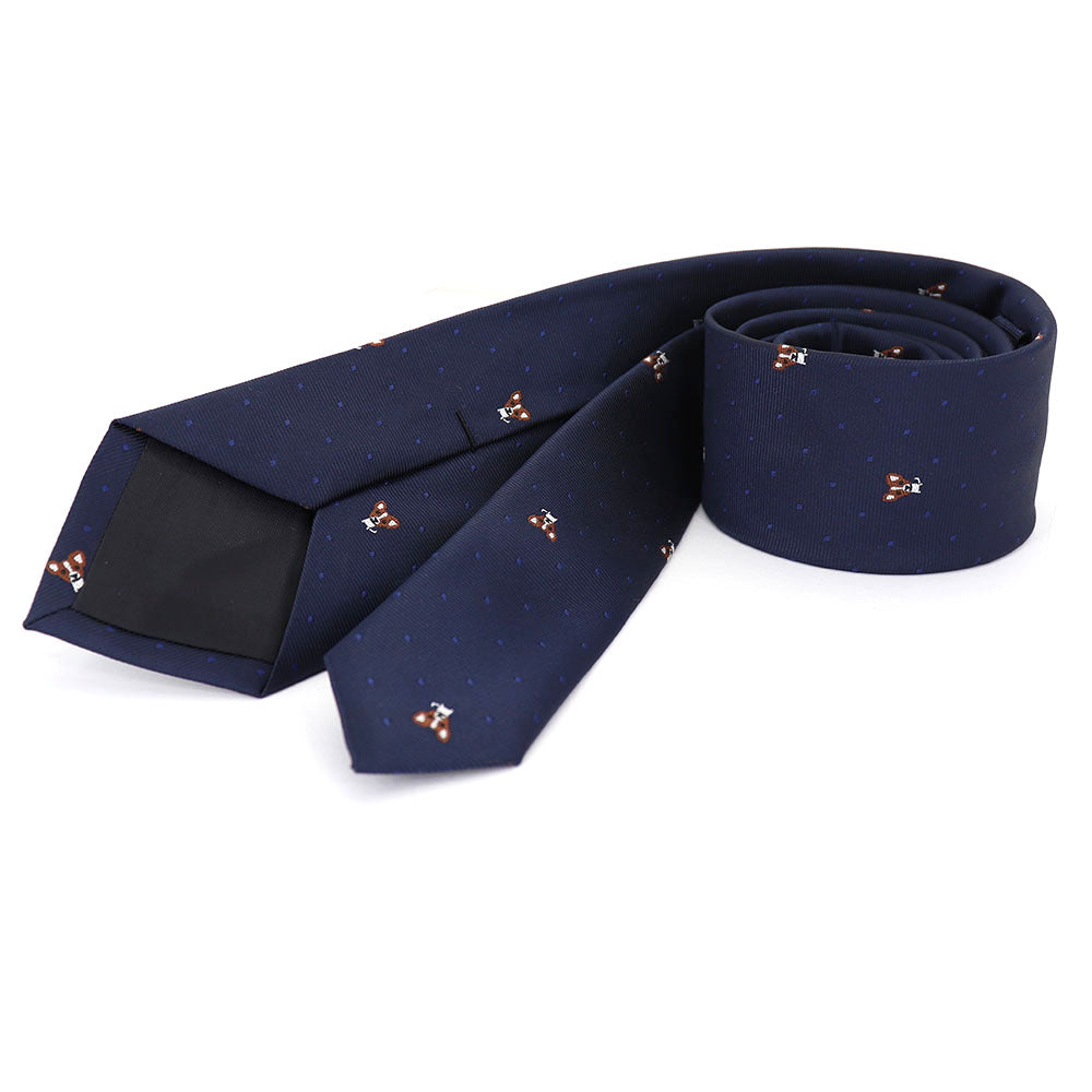 ネイビー地-犬柄刺-動物-水玉-ネクタイ-可愛い-ポリエステル-おしゃれ-かわいい-結婚式-カジュアル-シンプル-スーツ-人気-プレゼント-ギフト-春-成人式