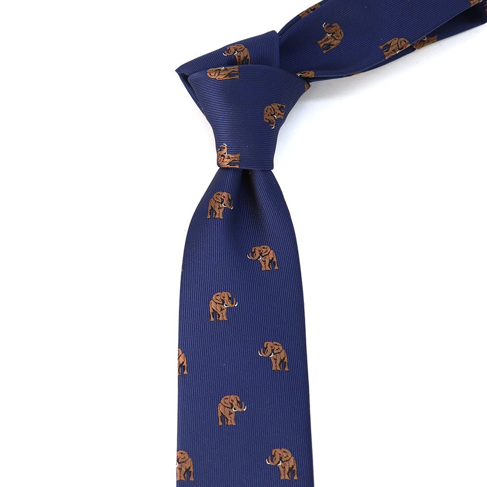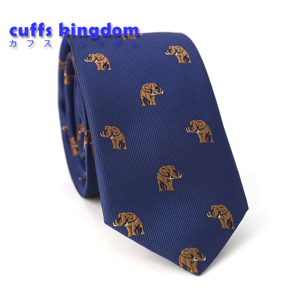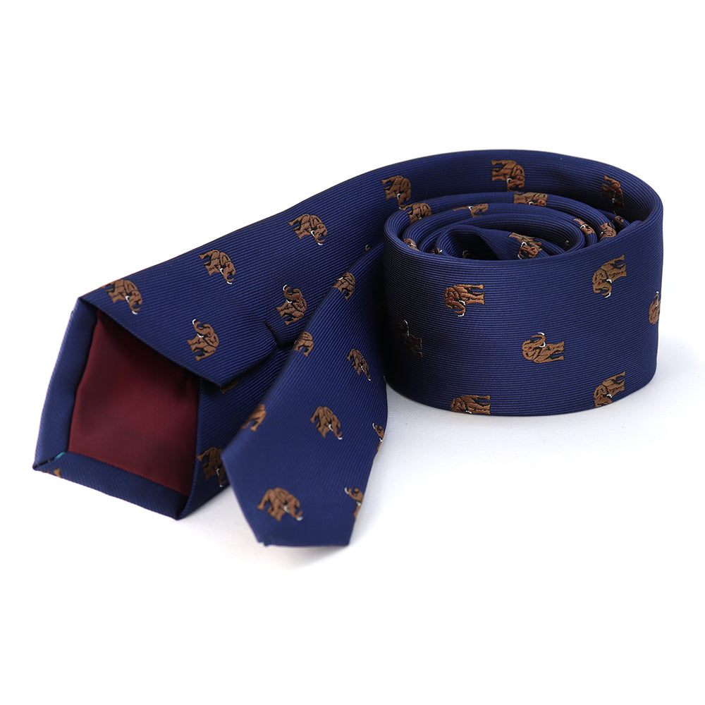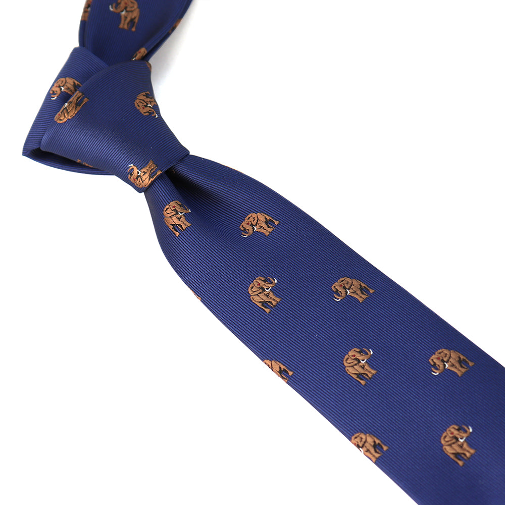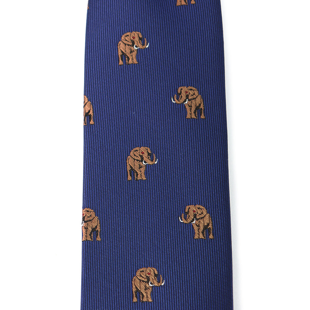 ネイビー生地-マンモス-象-刺繍-茶色-動物-ネクタイ-メンズ-カジュアル-スーツ-ビジネス-人気-プレゼント-ギフト-幅6cm