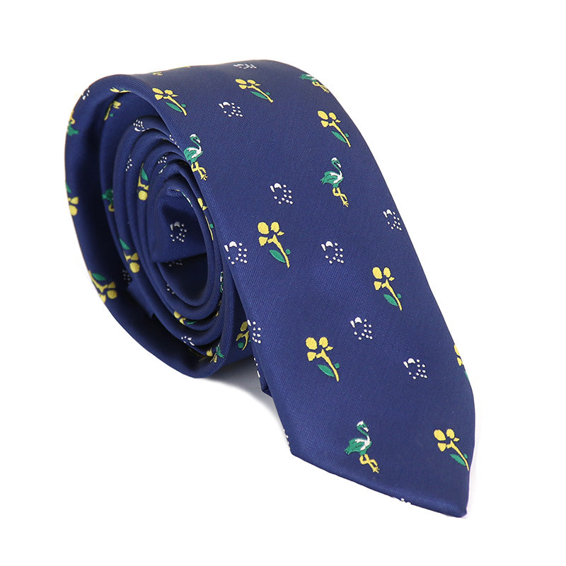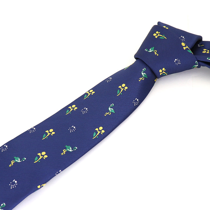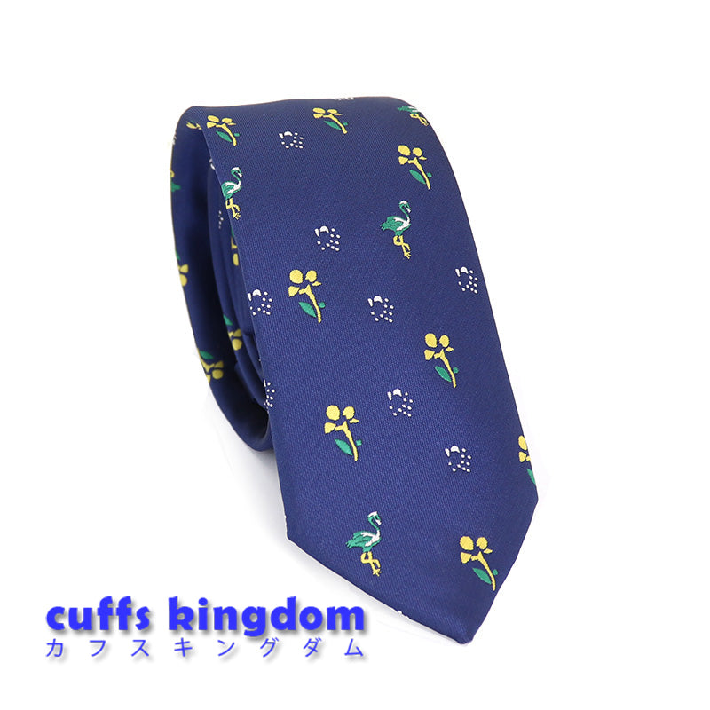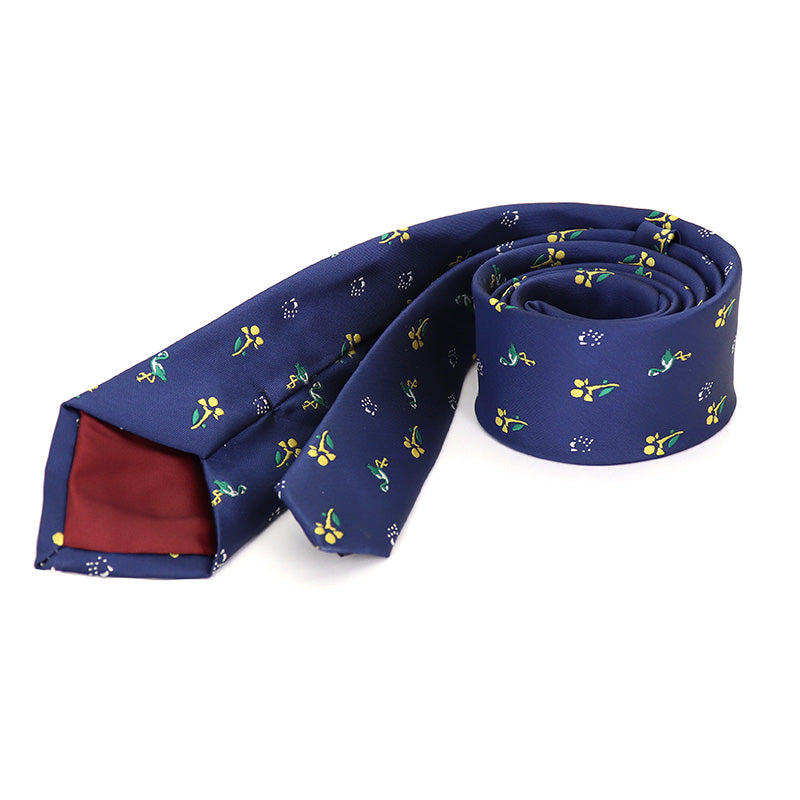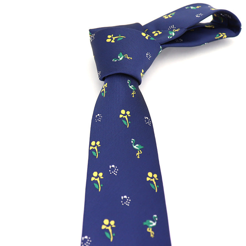 ネイビー生地-黄色い花-刺繍-植物-ネクタイ-ポリエステル-全長-約-145cm-剣幅-約-6cm-おしゃれ-かわいい-結婚式-カジュアル-シンプル-スーツ-人気-プレゼント-ギフト-春-成人式