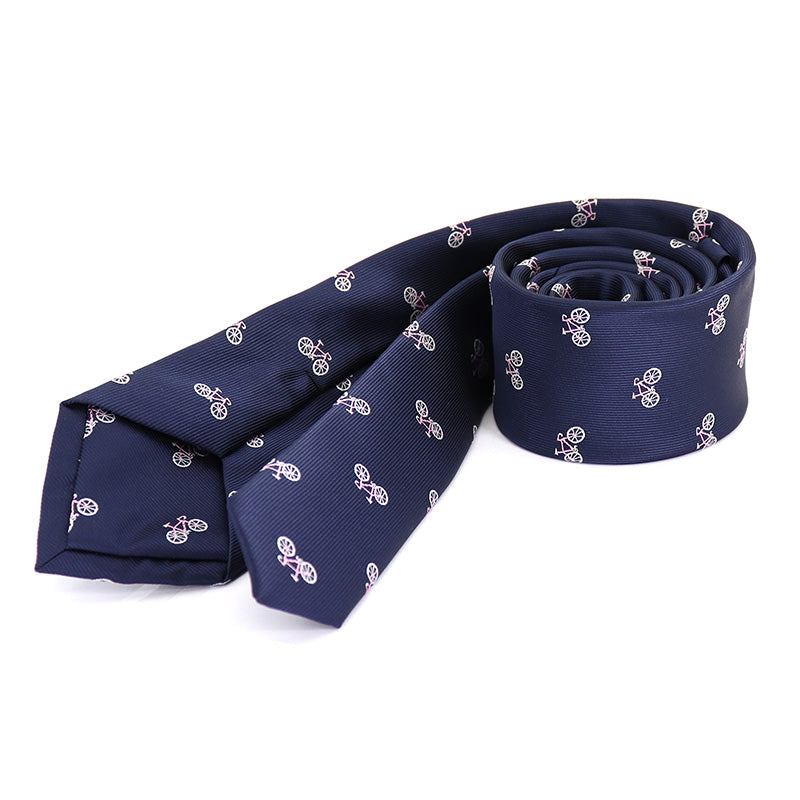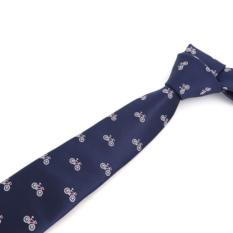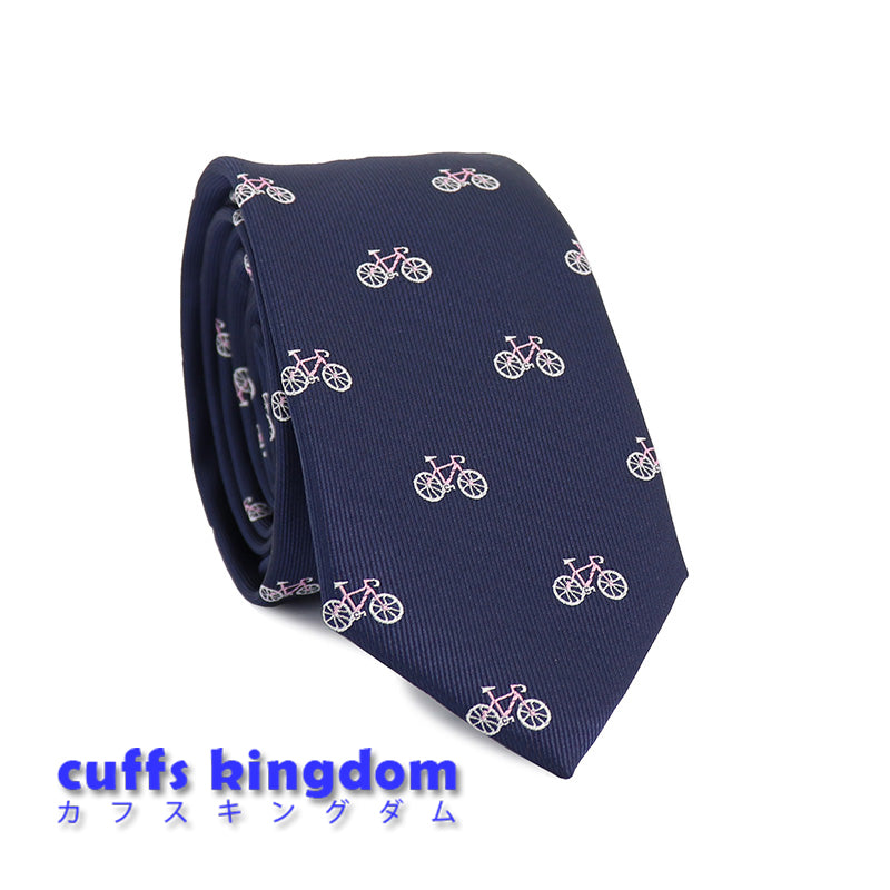 ネイビー-挿し色-ピンク自転車-刺繍-可愛い-スポーツ-ネクタイ-ペット-ポリエステル-全長-約-145cm-剣幅-約-6cm-おしゃれ-かわいい-結婚式-カジュアル-シンプル-スーツ-人気-プレゼント-ギフト-春-成人式
