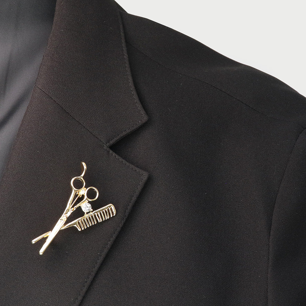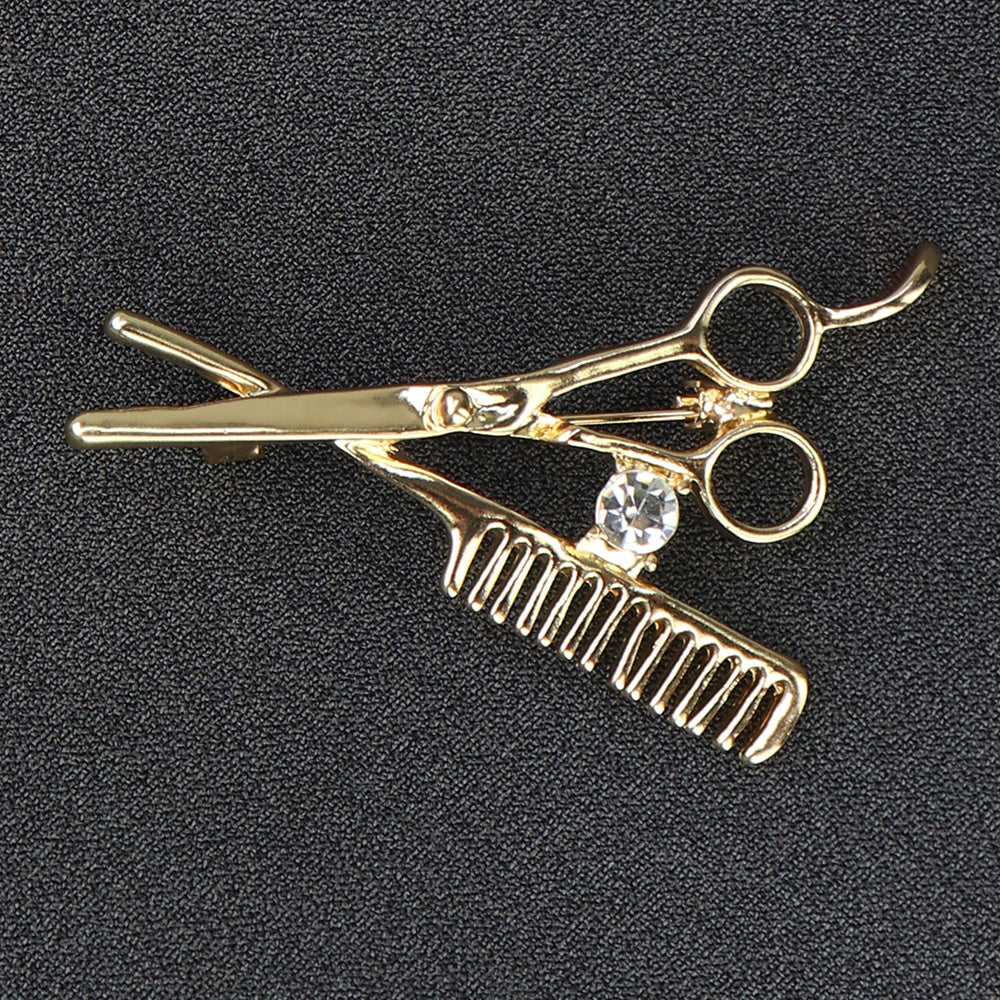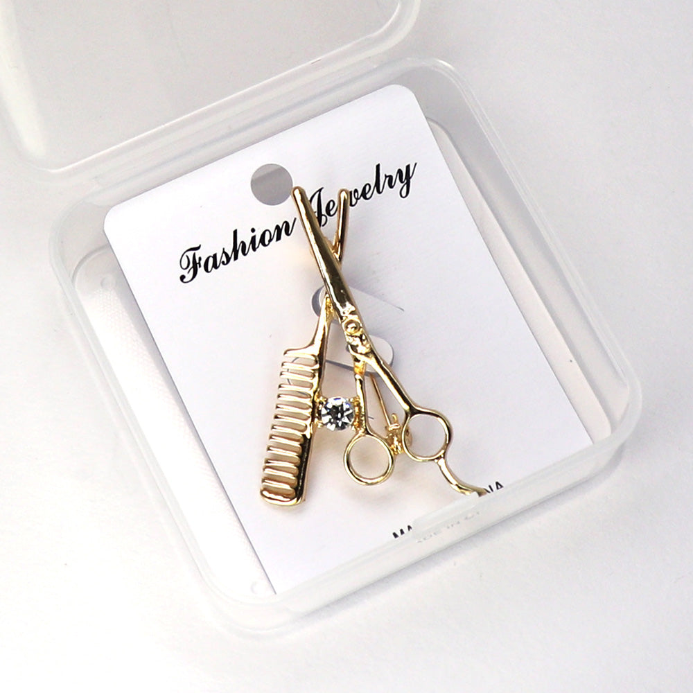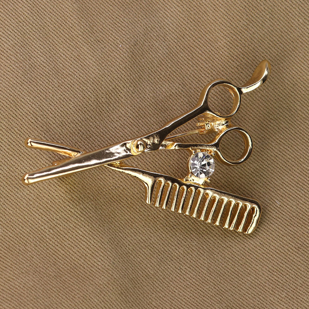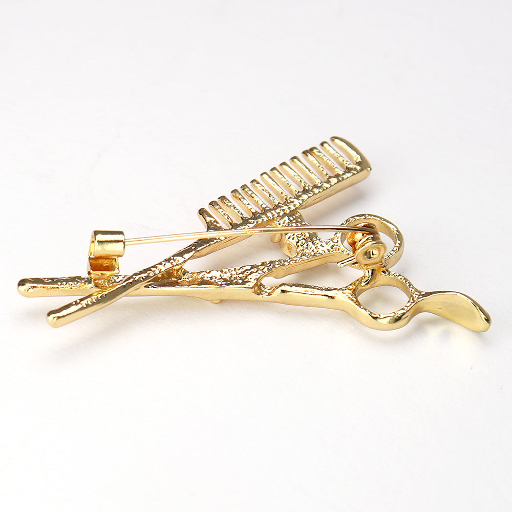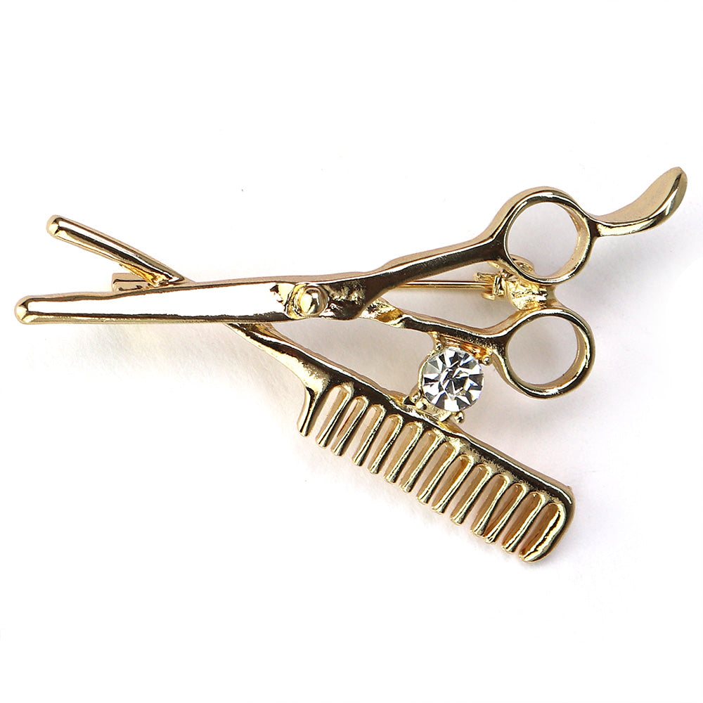 ハサミとクシ-ブローチ-ゴールド-美容師-理容師-ファッション-ブローチピン-ユニーク-可愛い-おしゃれ-アクセサリー-プレゼント-贈り物-メンズ-レディース-ジュエリー-カフス専門店