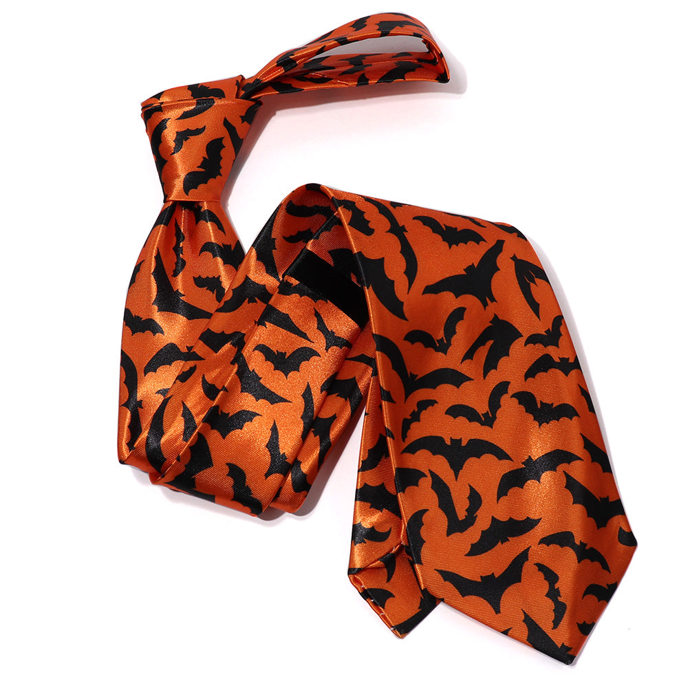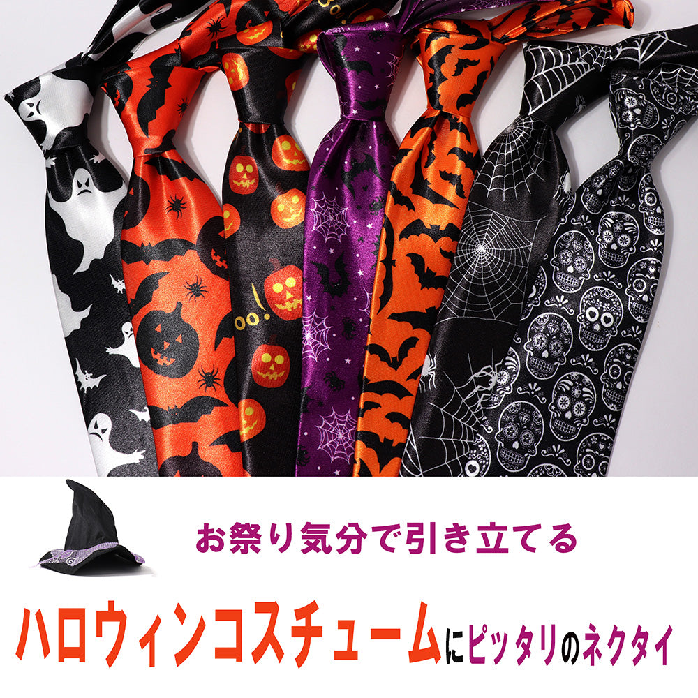 ハロウィン-定番カラー-コウモリ-ネクタイ-黒-オレンジ-男女-コスプレ-コスチューム-仮装-パーティー-人気-幅8cm