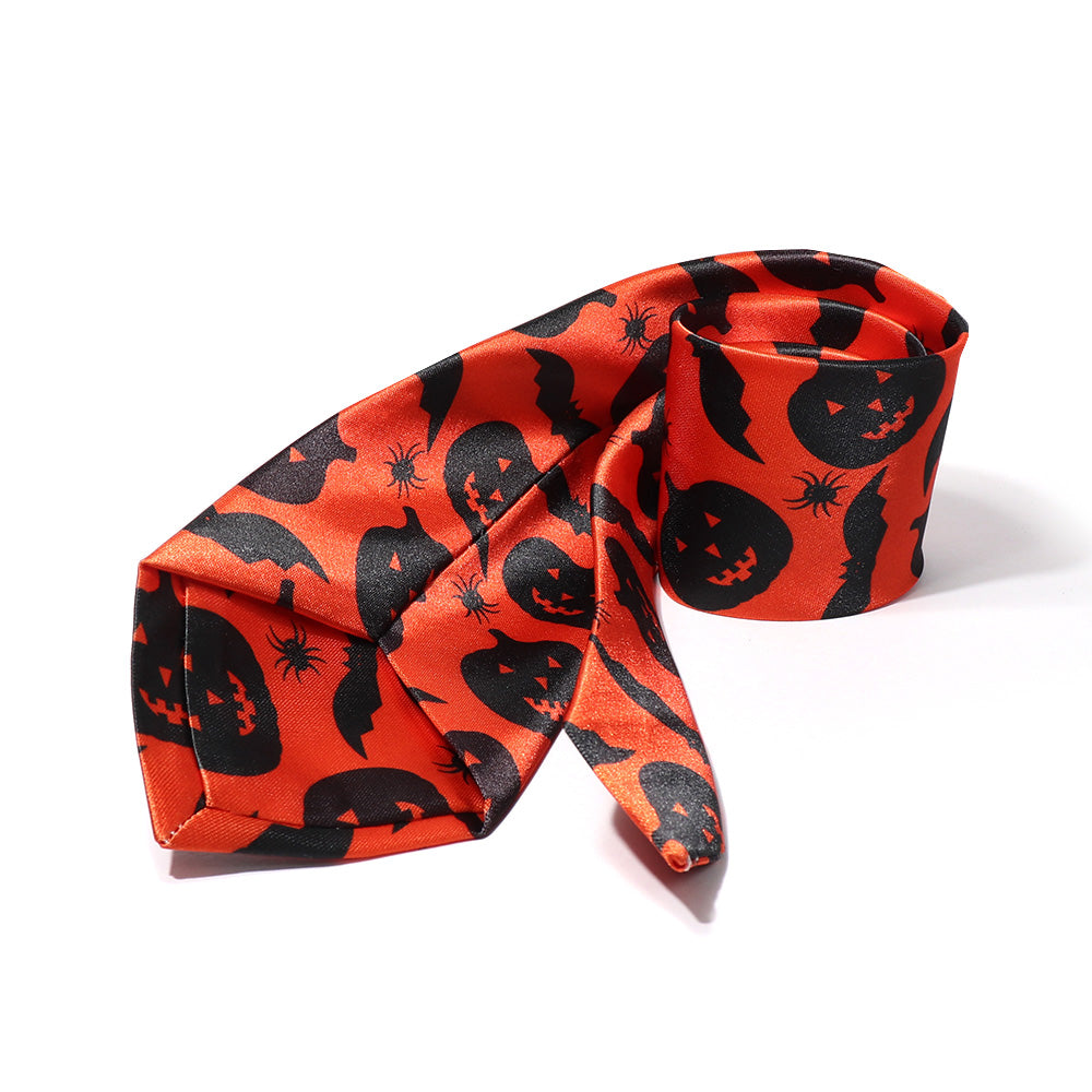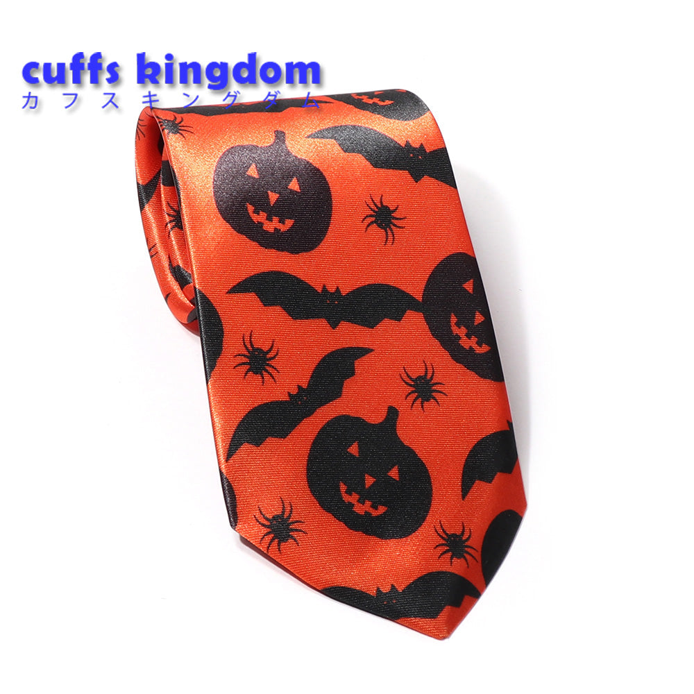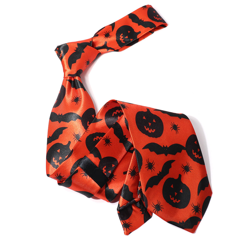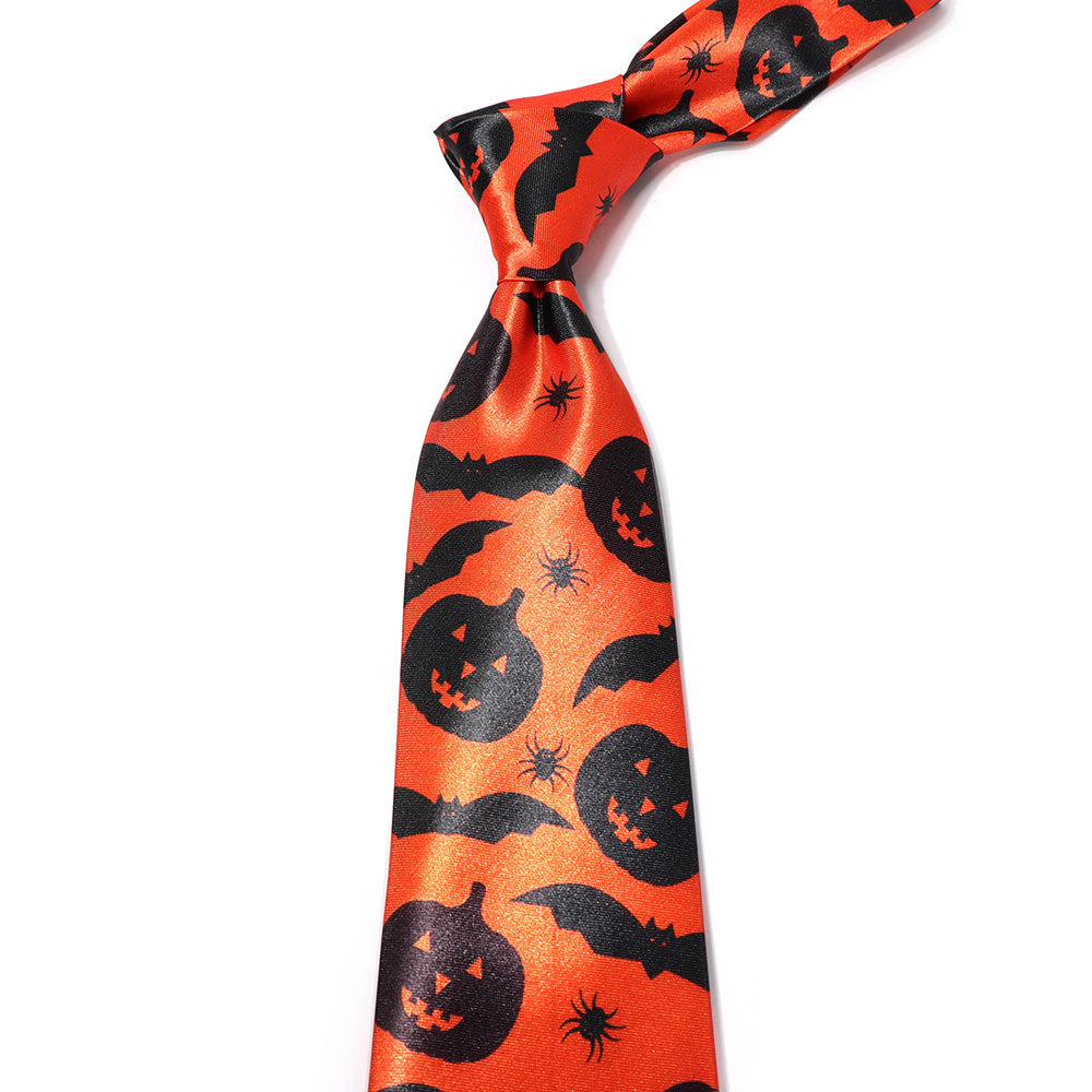 ハロウィン-飛び回る-カボチャ-コウモリ-クモ-ネクタイ-黒とオレンジ色-男女-コスチューム-仮装-パーティー-人気-幅8cm