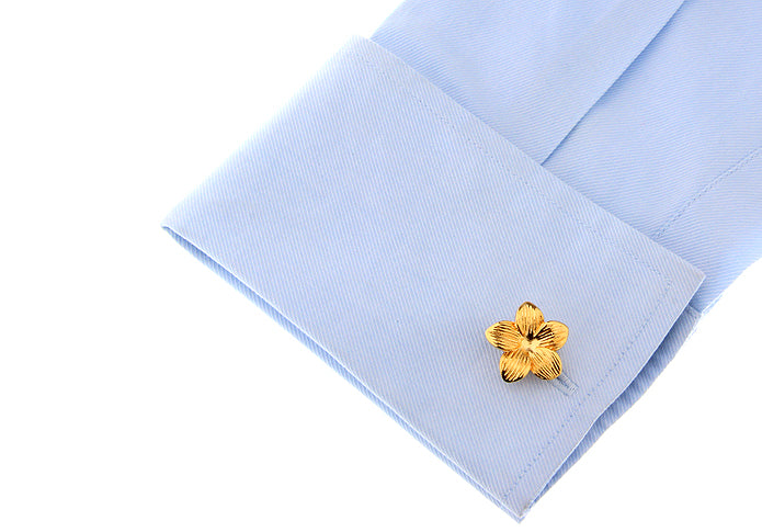 ハワイの花-プルメリア-ゴールド-金系-カフスボタン-ゴールド-男女-カフリングス-おしゃれ-エレガント-花-植物-人気-プレゼント-ギフト-結婚式-入学式-成人式-カフス専門店