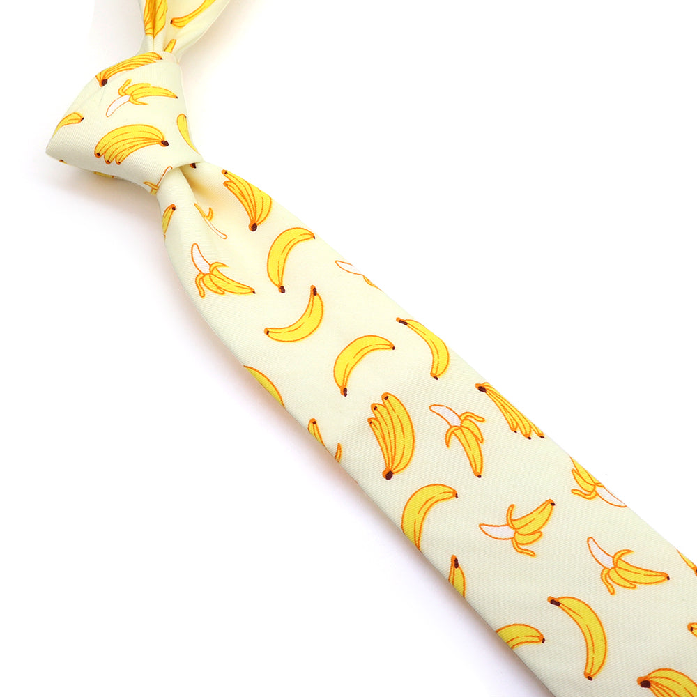 バナナ イラスト ネクタイ かわいい プリント ユニーク 個性的 人気 果物 イベント パーティ プレゼント ギフト 目立つ 限定 主役 幅6cm