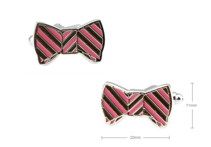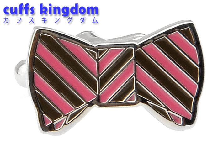 バレンタイン-カラー-お洒落-蝶ネクタイ-カフスボタン-ピンク-x-茶-桃色-男女-カフリングス-キュート-リボン-かわいい-結婚式