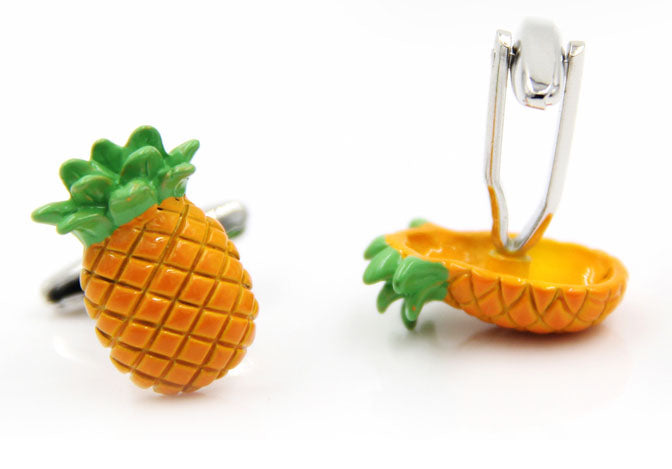 パイナップルフルーツ-緑オレンジ色-カフスボタン-果物-おしゃれ-男女-カフリングス-個性-プレゼント-面白-可愛い-人気-結婚式-カフス専門店