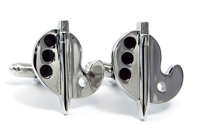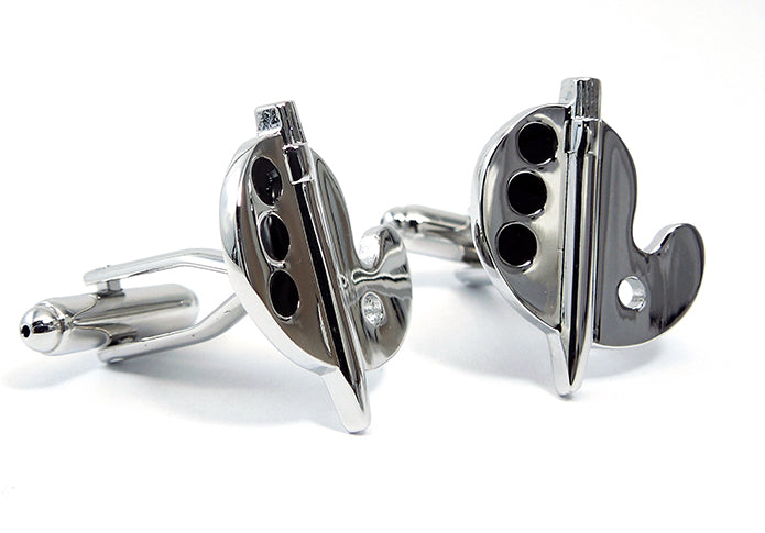 パレット-筆-スチール-カフスボタン-シルバー-色-系-男女-カフリングス-おしゃれ-かわいい-趣味-スーツ-大人気-学校-プレゼント-ギフト-入学式-成人式