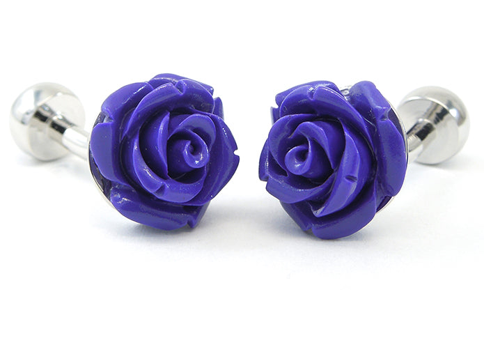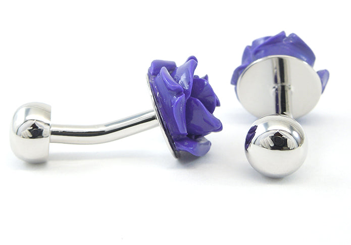 パープルローズ-銀-紫-カフスボタン-紫系-パープル-男女-カフリングス-営業マン-おしゃれ-かわいい-結婚式-カジュアル-シンプル-花-スーツ-人気-プレゼント-ギフト-入園式-入学式-成人式