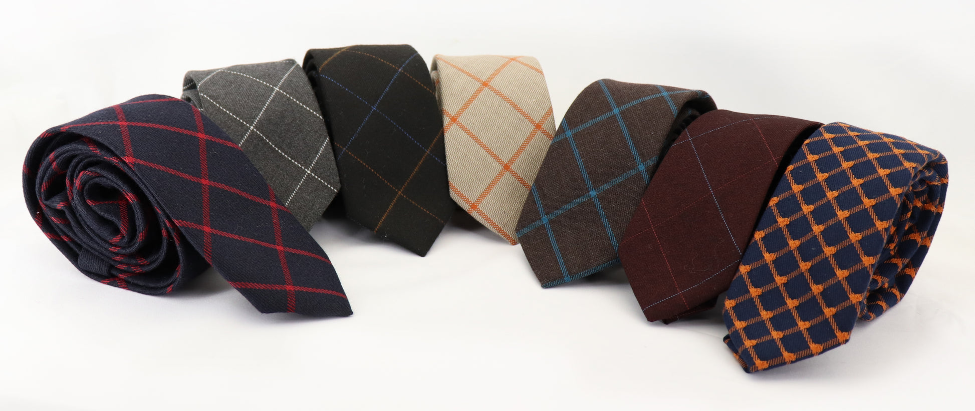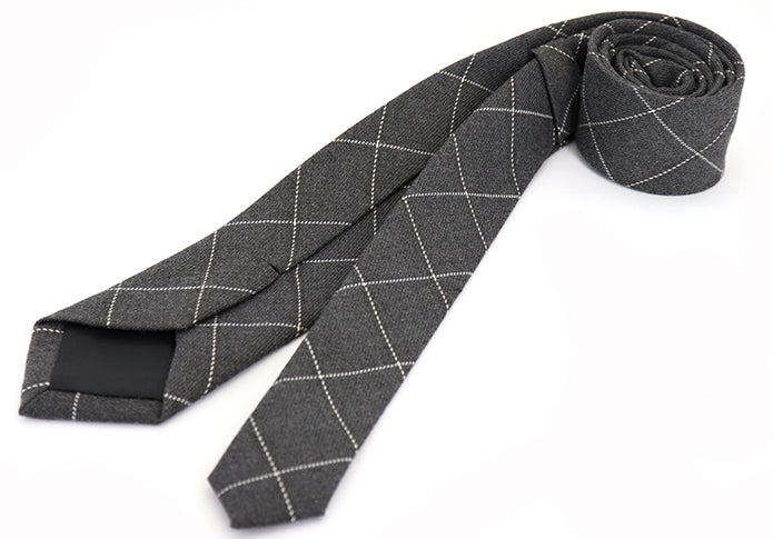 ビジネス-ネクタイ-グレー地-ホワイト-極細-格子柄-男女-祝-おしゃれ-ビジネス-結婚式-カジュアル-スーツ-人気-プレゼント-ギフト-入園式-入学式-成人式-暖か-暖色-温もり