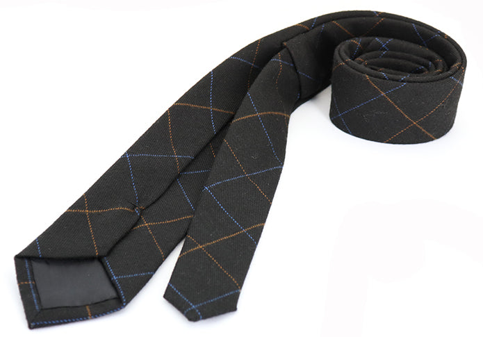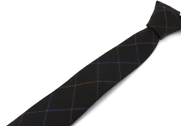 ビジネス-ネクタイ-ブラック-オレンジ-ブルー-極細-格子柄-男女-祝-おしゃれ-ビジネス-結婚式-カジュアル-スーツ-人気-プレゼント-ギフト-入園式-入学式-成人式-暖か-暖色-温もり