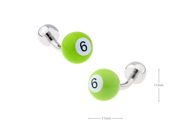 ビリヤード-6-黄緑-色-ユニーク-カフスボタン-緑色-系-男女-カフリングス-営業マン-おしゃれ-ユニーク-趣味-スポーツ-シンプル-スーツ-人気-プレゼント-ギフト-カフス専門店