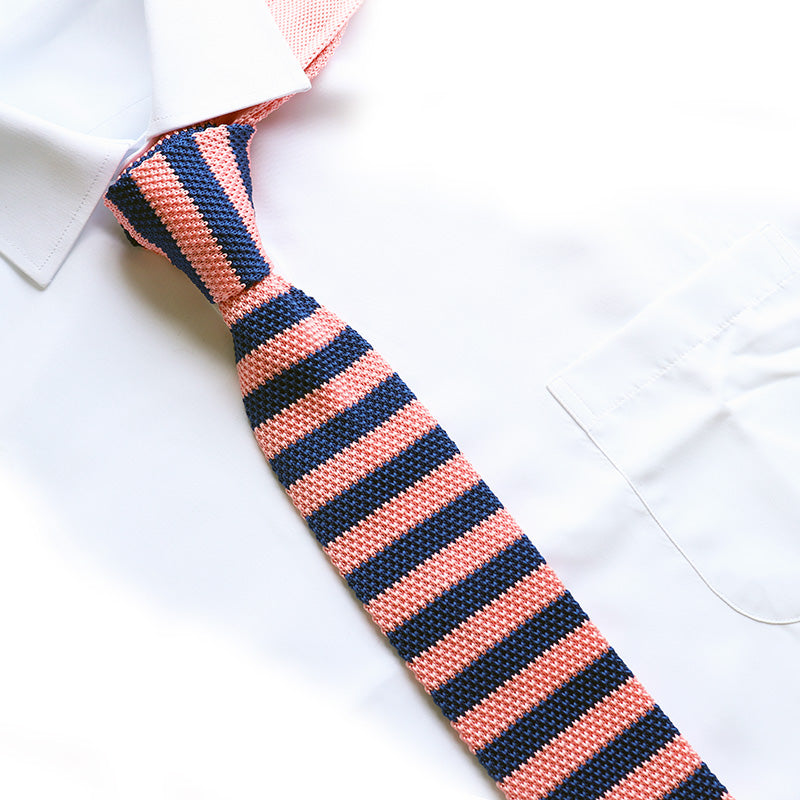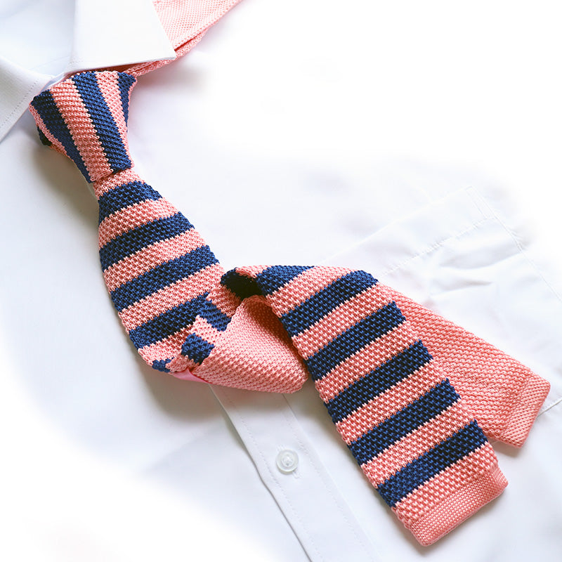 ピンク-ベース-ネイビーライン-オシャレな組み合わせ-ニット-ネクタイ-ニットタイプ-全長-約141cm-剣幅-約5-5cm-情熱系-奇抜-男女-祝-おしゃれ-かわいい-結婚式-カジュアル-シンプル-スーツ-人気-プレゼント-ギフト-入園式-入学式-成人式