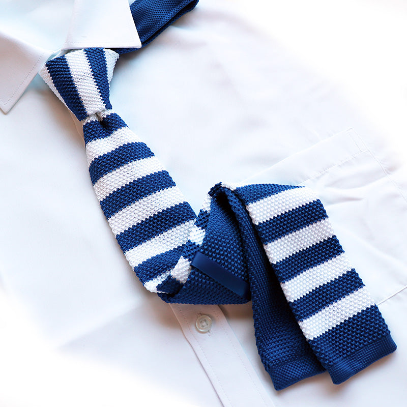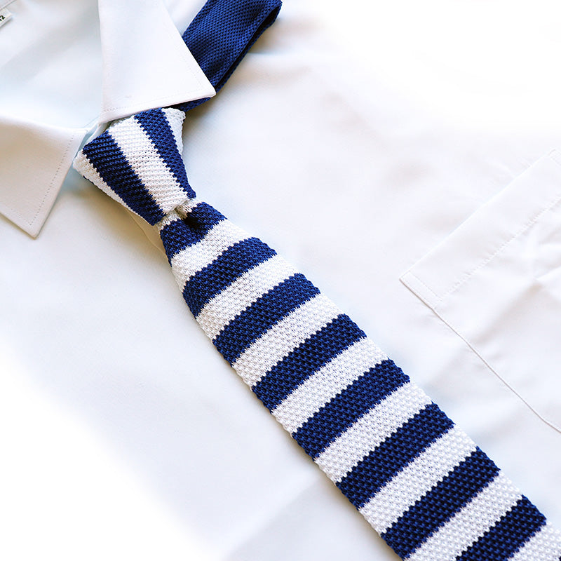 ブルー-ベース-白色ボーター-マリンカラー-ニットネクタイ-ニットタイプ-全長-約141cm-剣幅-約5-5cm-情熱系-奇抜-男女-祝-おしゃれ-かわいい-結婚式-カジュアル-シンプル-スーツ-人気-プレゼント-ギフト-入園式-入学式-成人式