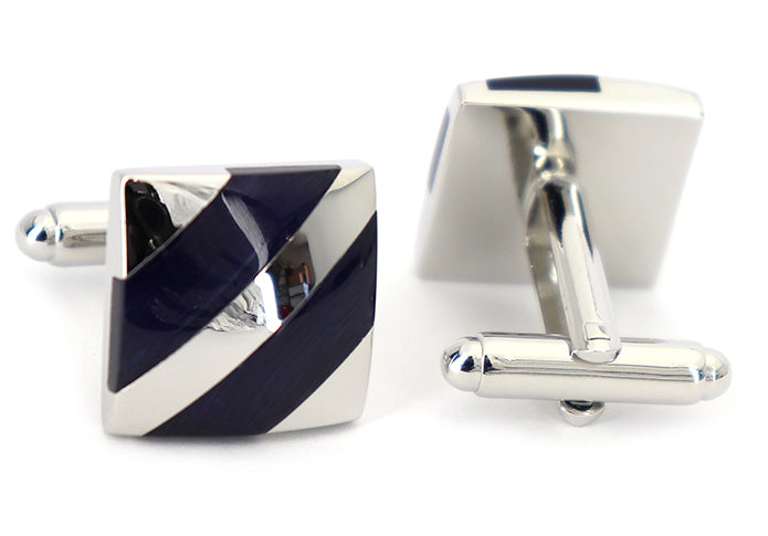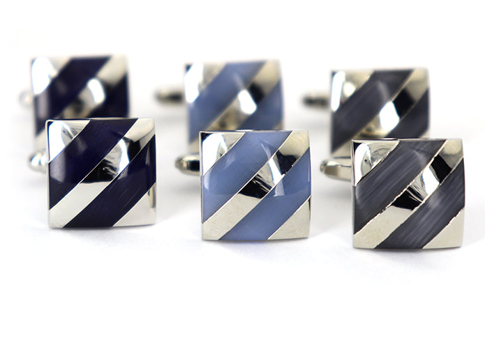 ベーシック 斜線 模様 カフスボタン 【 藍色 】【 青色 】【 グレー色 】【 男女 動物 可愛い おすすめ おしゃれ 男女 営業マン 結婚式 スーツ 大人気 カフリングス プレゼント ギフト 入園式 入学式 成人式 】