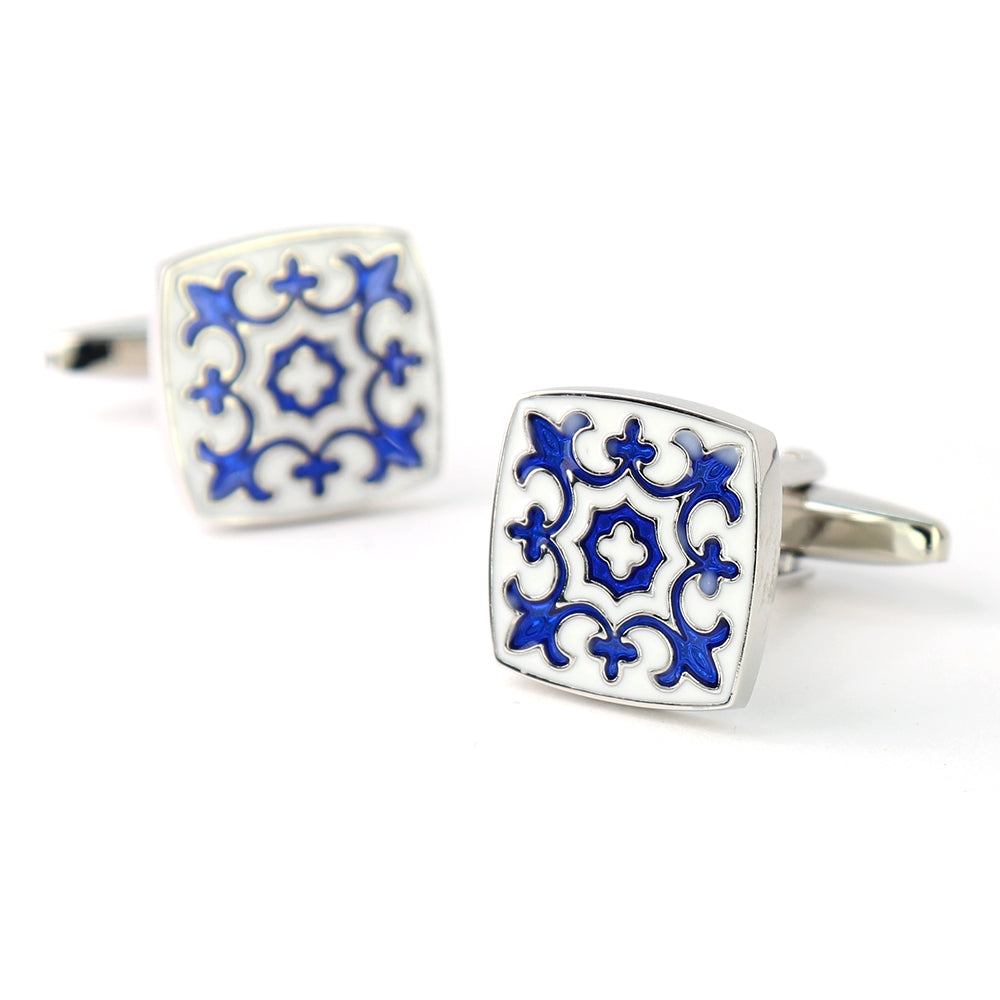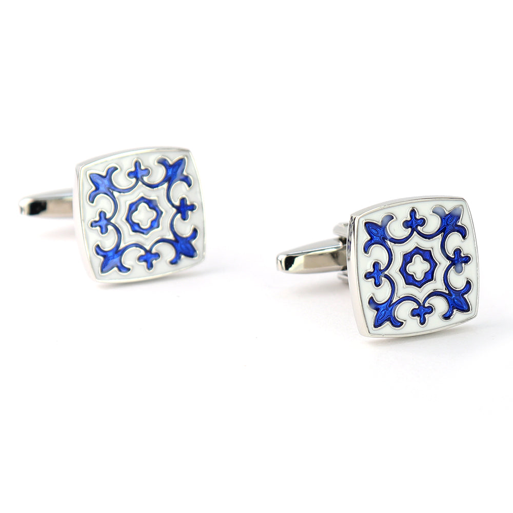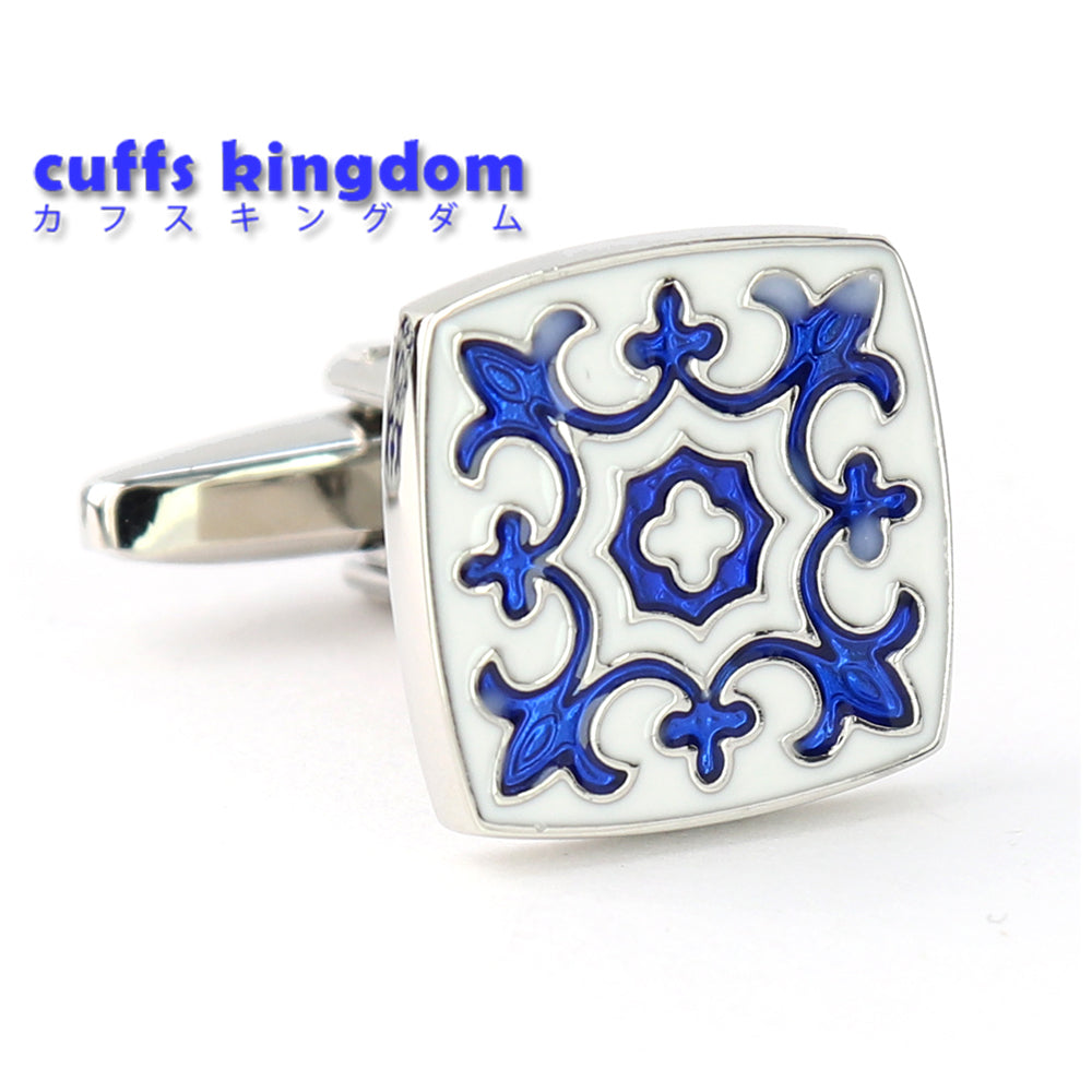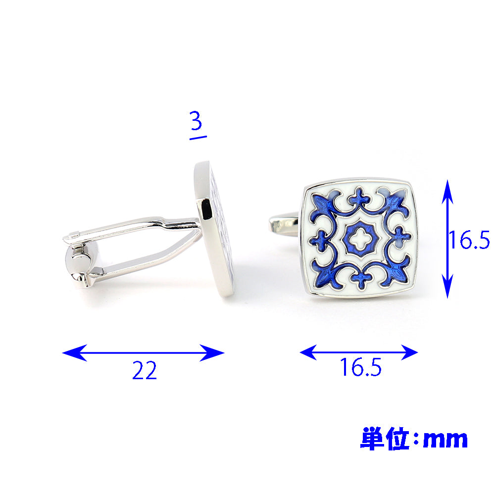 ホワイト-ブルー-スクエア-カフスボタン-おしゃれ-男女-カフリングス-エレガント-シンプル-人気-プレゼント-ギフト-入園式-入学式-成人式-カフス専門店