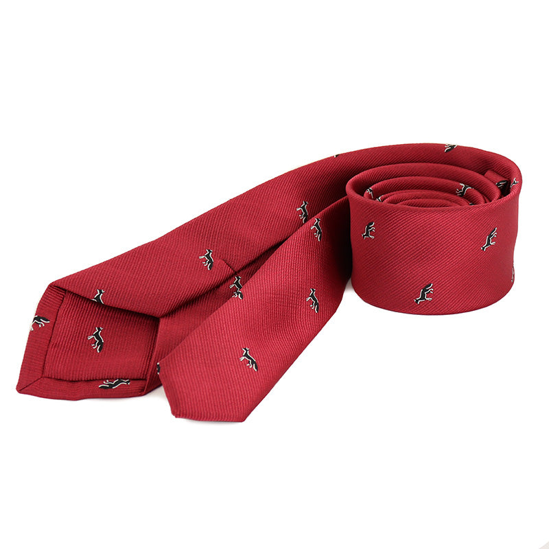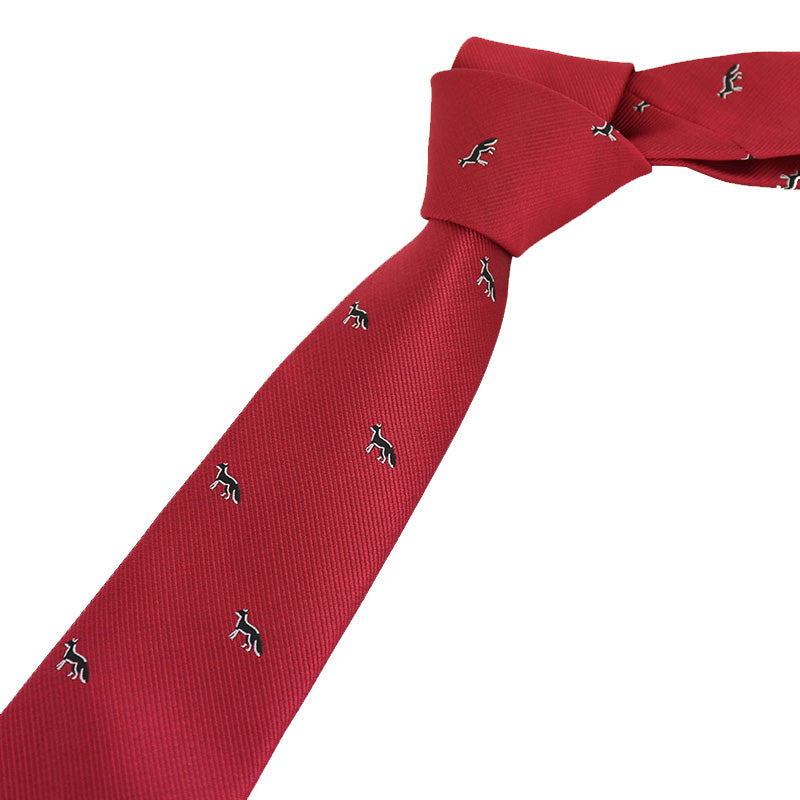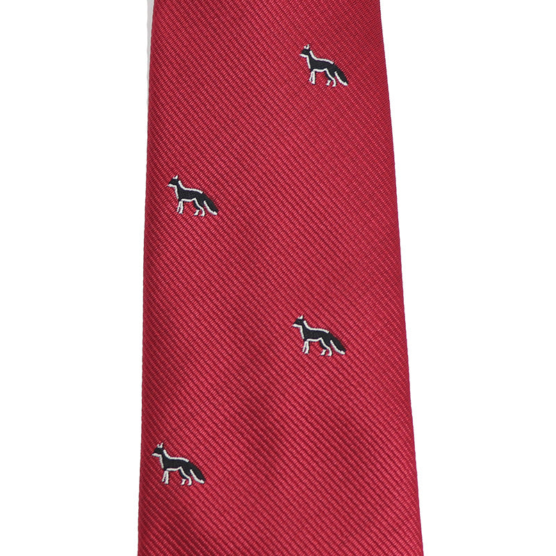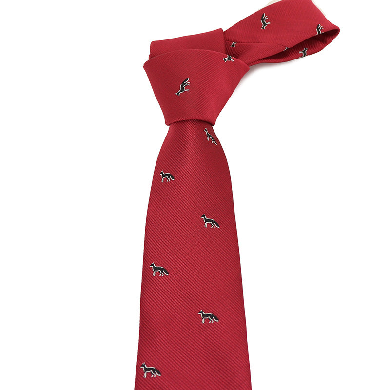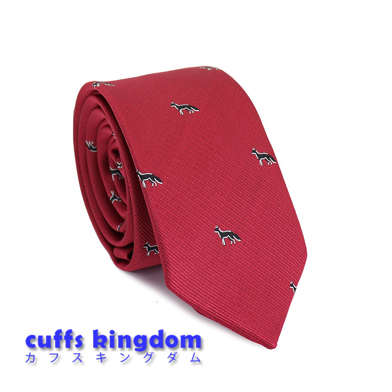レッド-黒-きつね-刺繍-可愛い-動物-ネクタイ-ペット-ポリエステル-全長-約-145cm-剣幅-約-6cm-おしゃれ-かわいい-結婚式-カジュアル-シンプル-スーツ-人気-プレゼント-ギフト-春-成人式