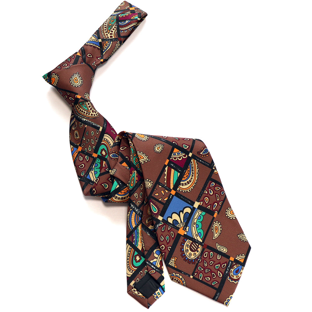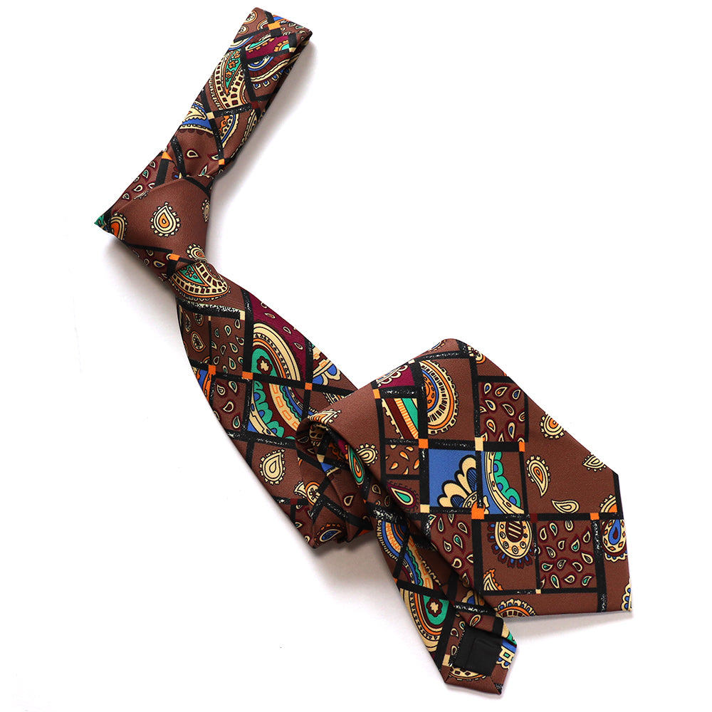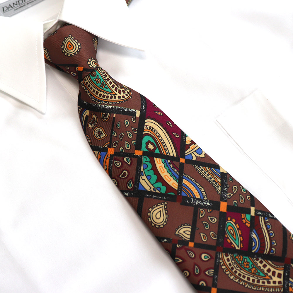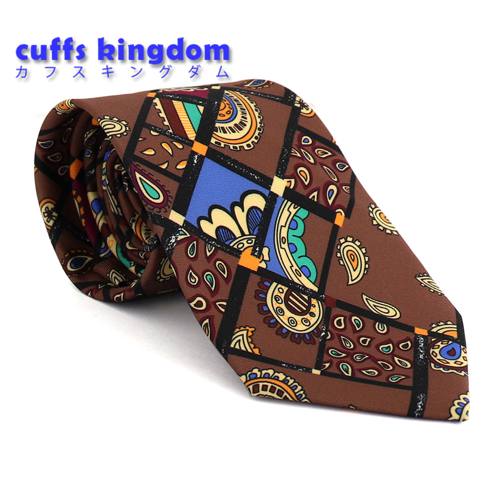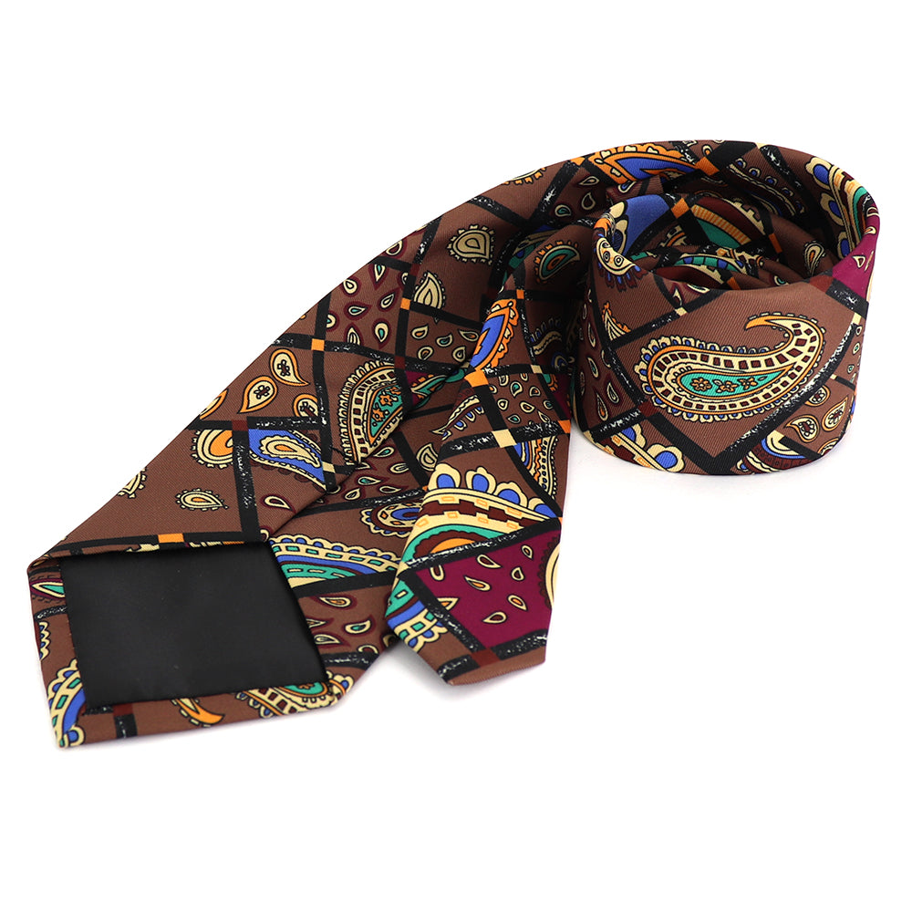 レトロな絵柄-ペイズリー柄ネクタイ-茶色-おしゃれ-かわいい-結婚式-カジュアル-シンプル-スーツ-人気-プレゼント-ギフト-春-成人式