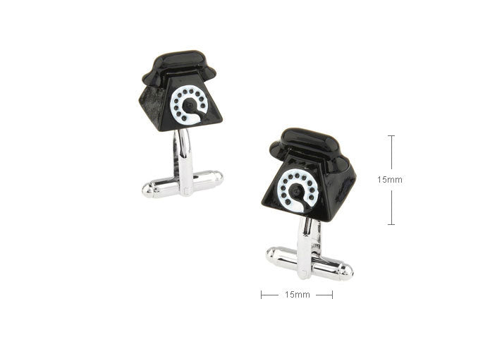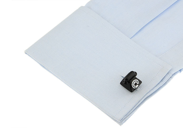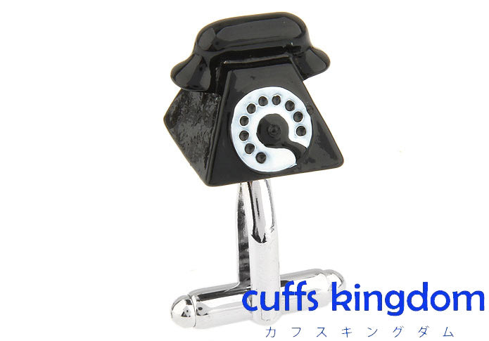 レトロ-アナログ-黒電話-ブラック-カフスボタン-ブラック-男女-カフリングス-ユニーク-趣味-面白-大人気-プレゼント-ギフト-カフス専門店
